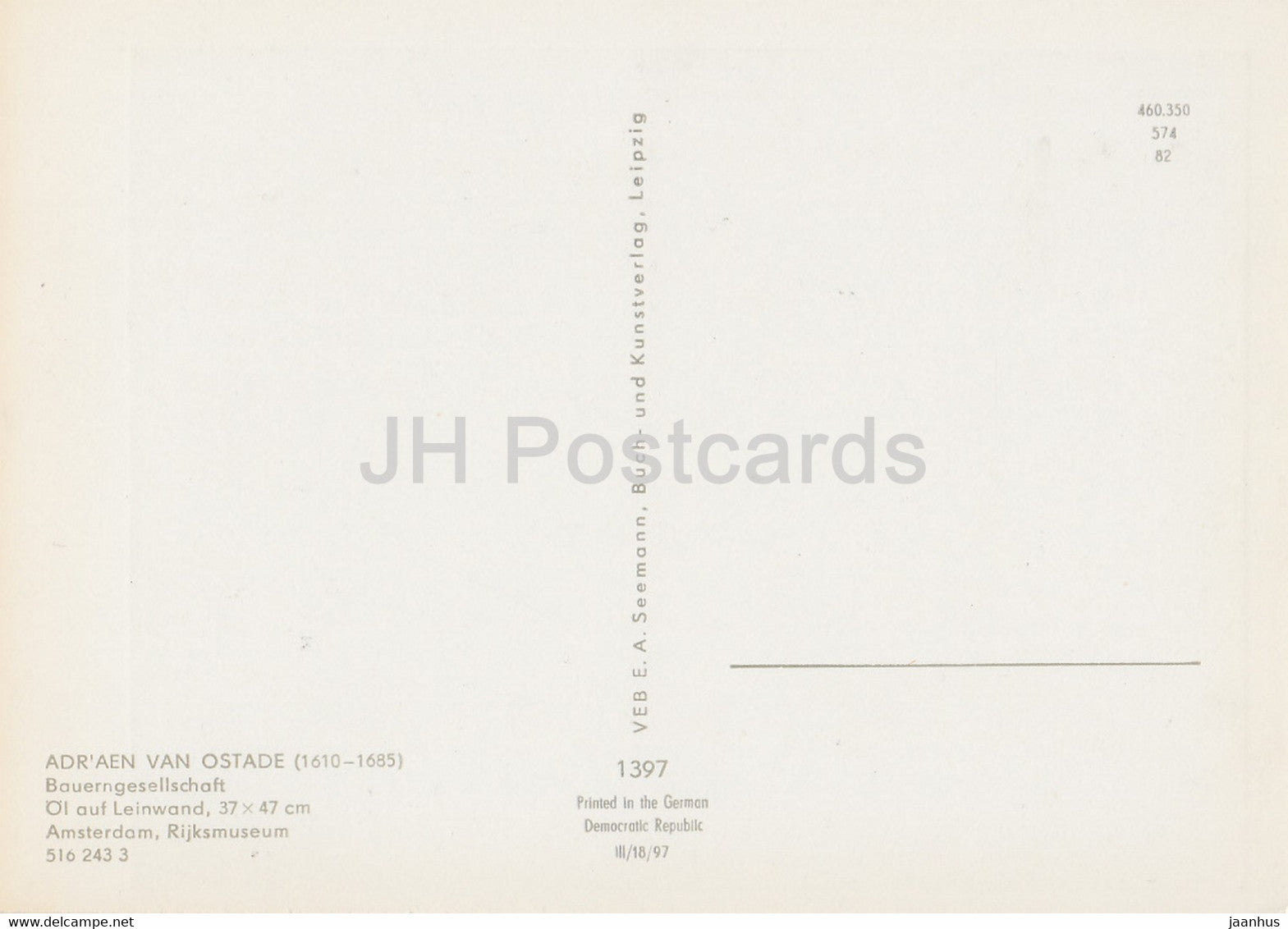 peinture d'Adriaen van Ostade - Bauerngesellschaft - Société paysanne - Art néerlandais - Allemagne DDR - inutilisé