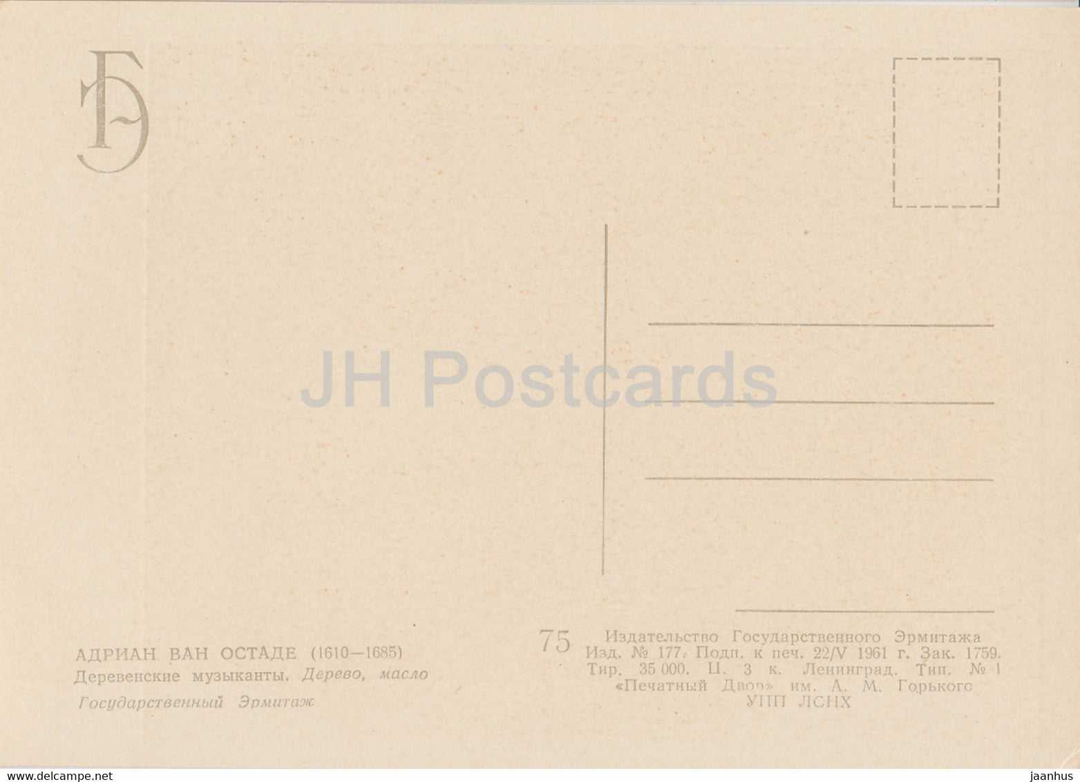 peinture d'Adriaen van Ostade - musiciens de village - chien - chello - art néerlandais - 1961 - Russie URSS - inutilisé