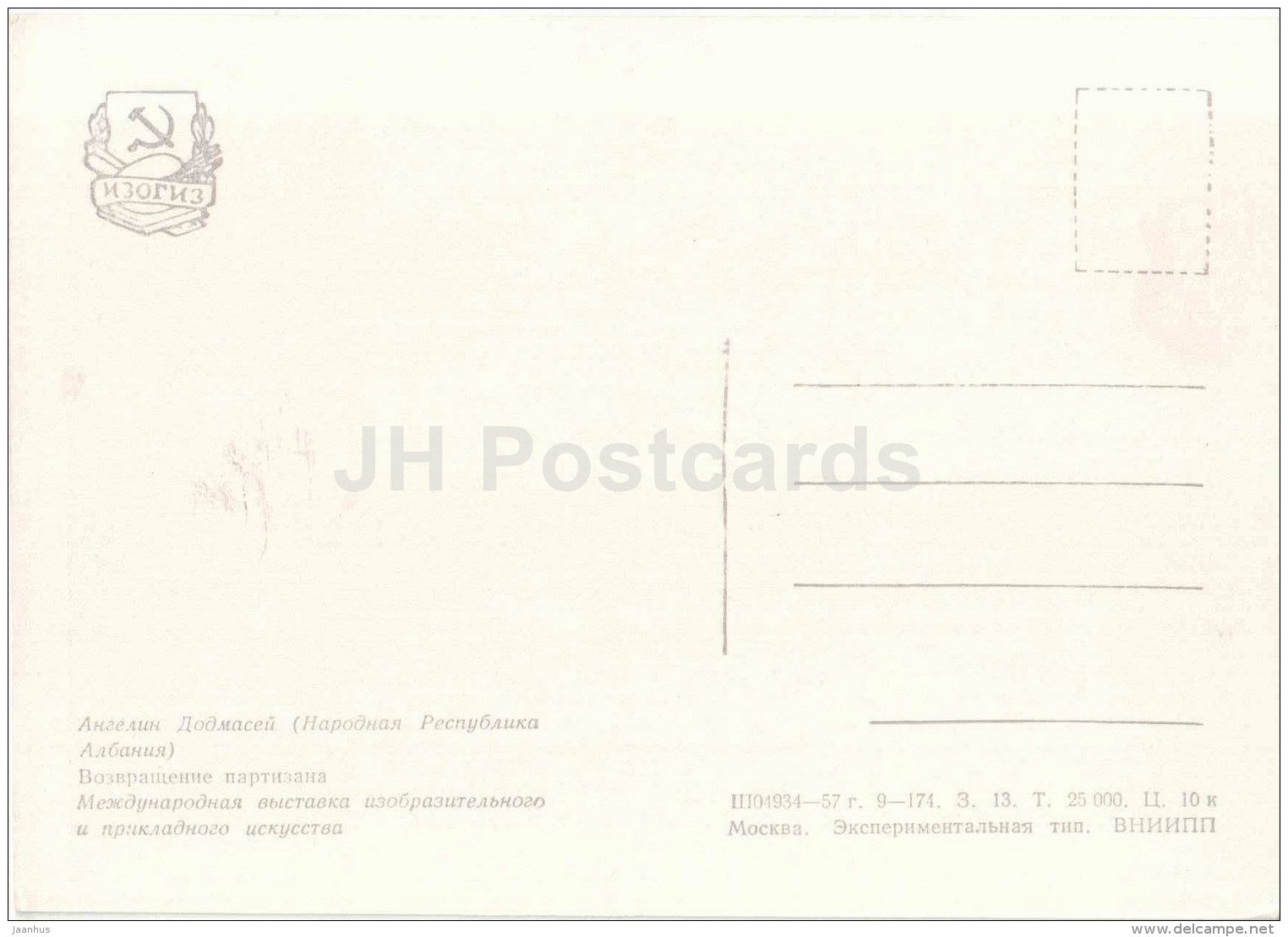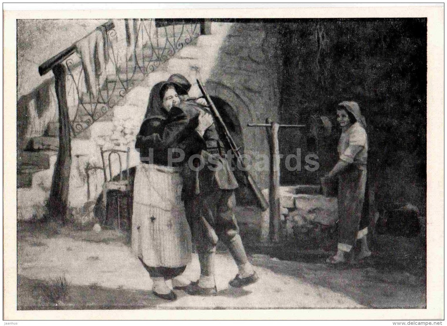 peinture d'Angelin Dodmasey - Retour partisan - Art albanais - Albanie - 1957 - Russie URSS - inutilisé