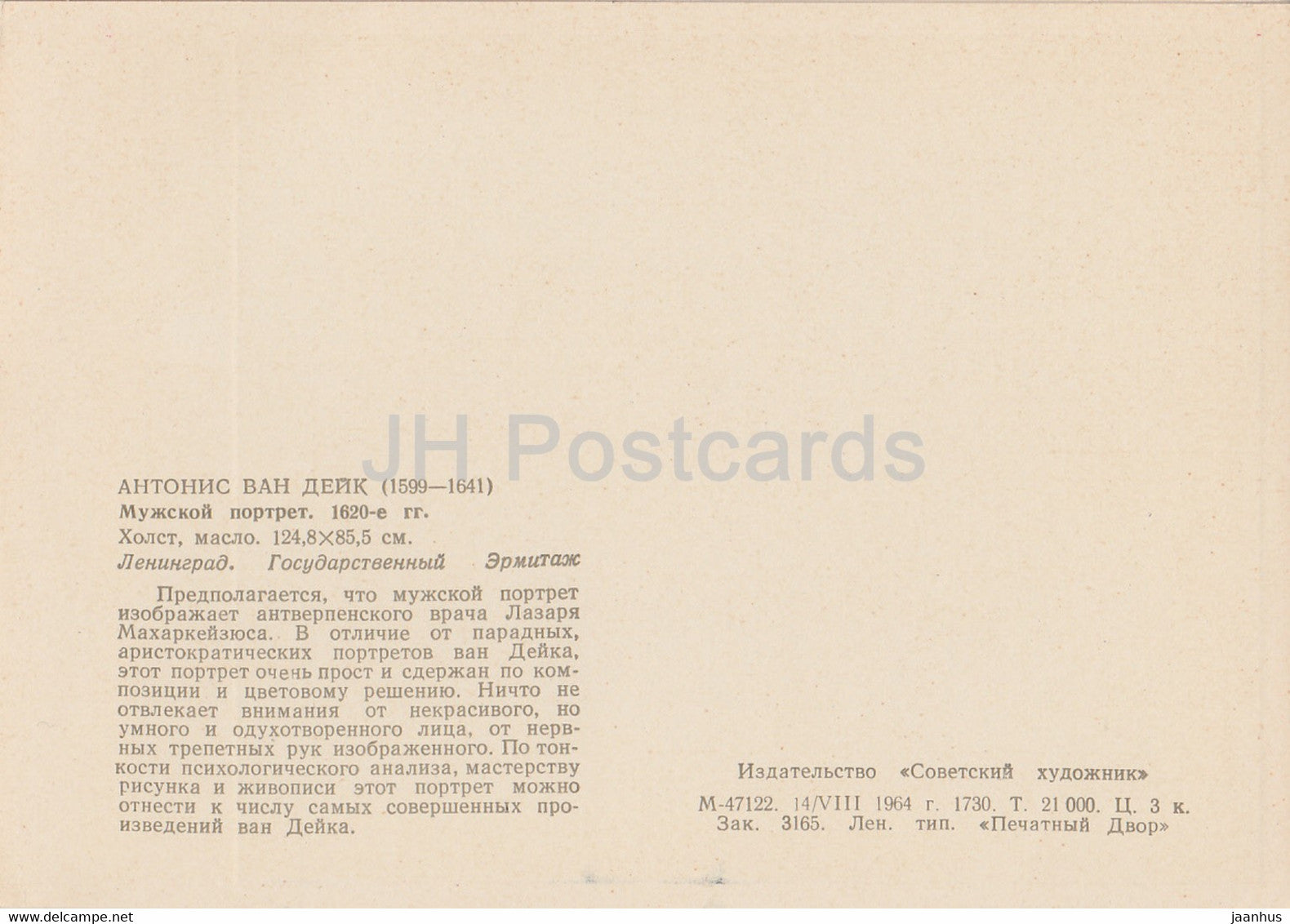 tableau d'Anthony van Dyck - Portrait d'homme - Art flamand - 1964 - Russie URSS - inutilisé