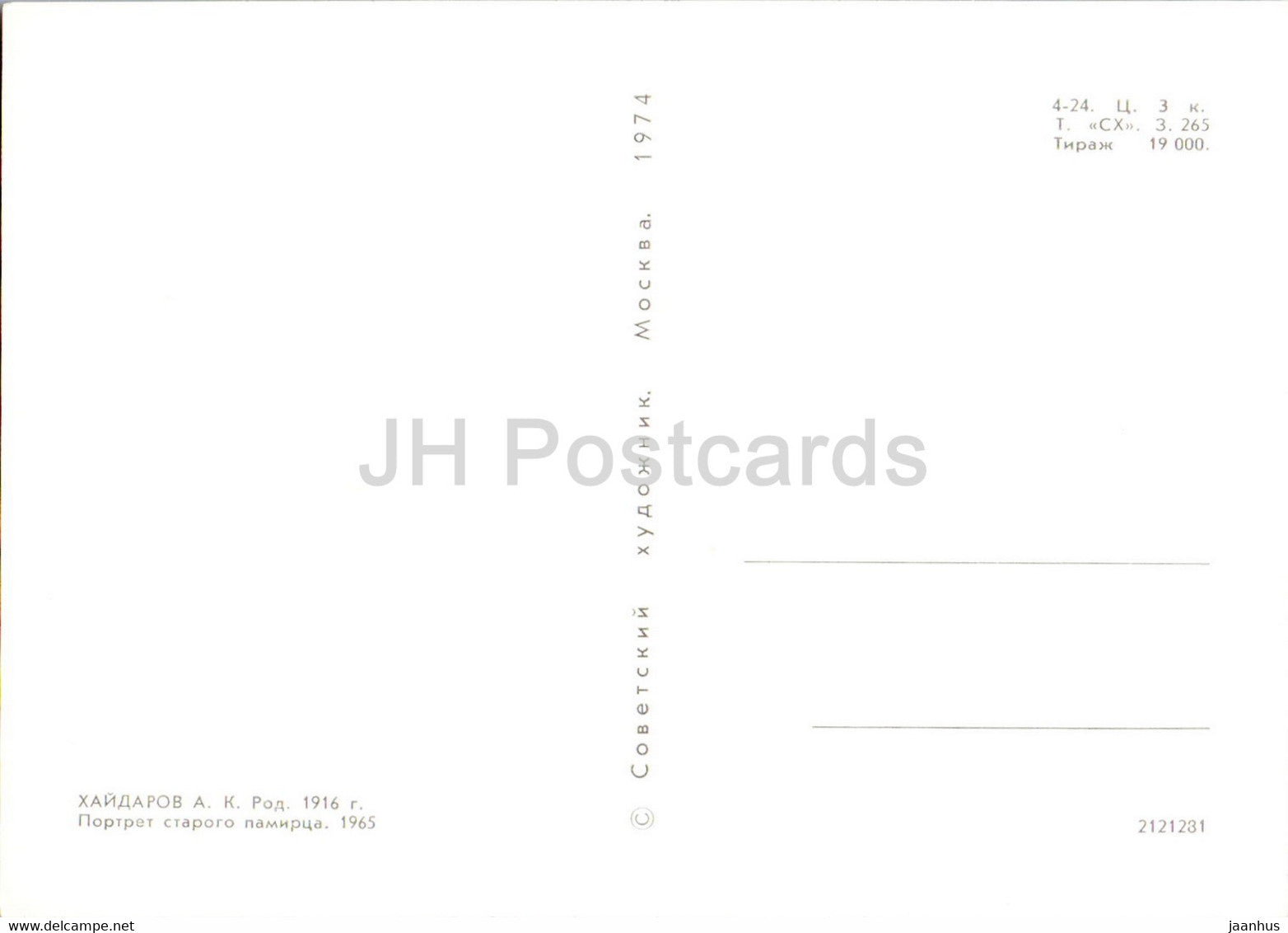 peinture d'Ashur Haydarov - portrait d'un vieil homme - Le long des routes du Pamir - Art tadjik - 1974 - Russie URSS - inutilisé