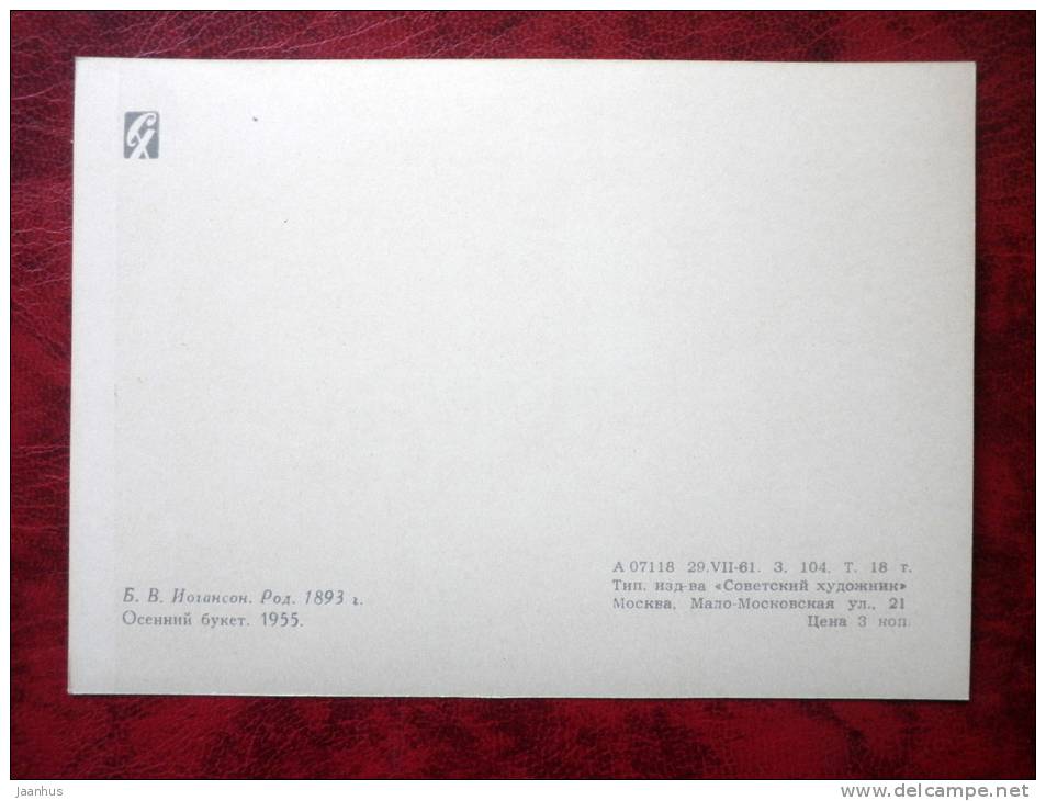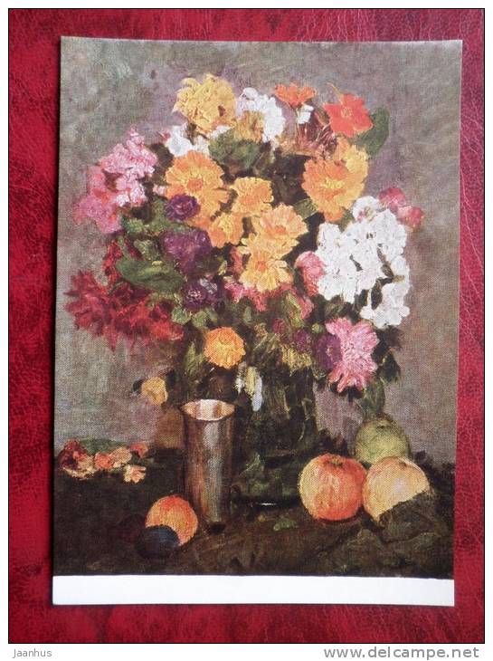 Peinture de BV Johanson - bouquet d'automne, 1955 - fleurs - art russe - inutilisé