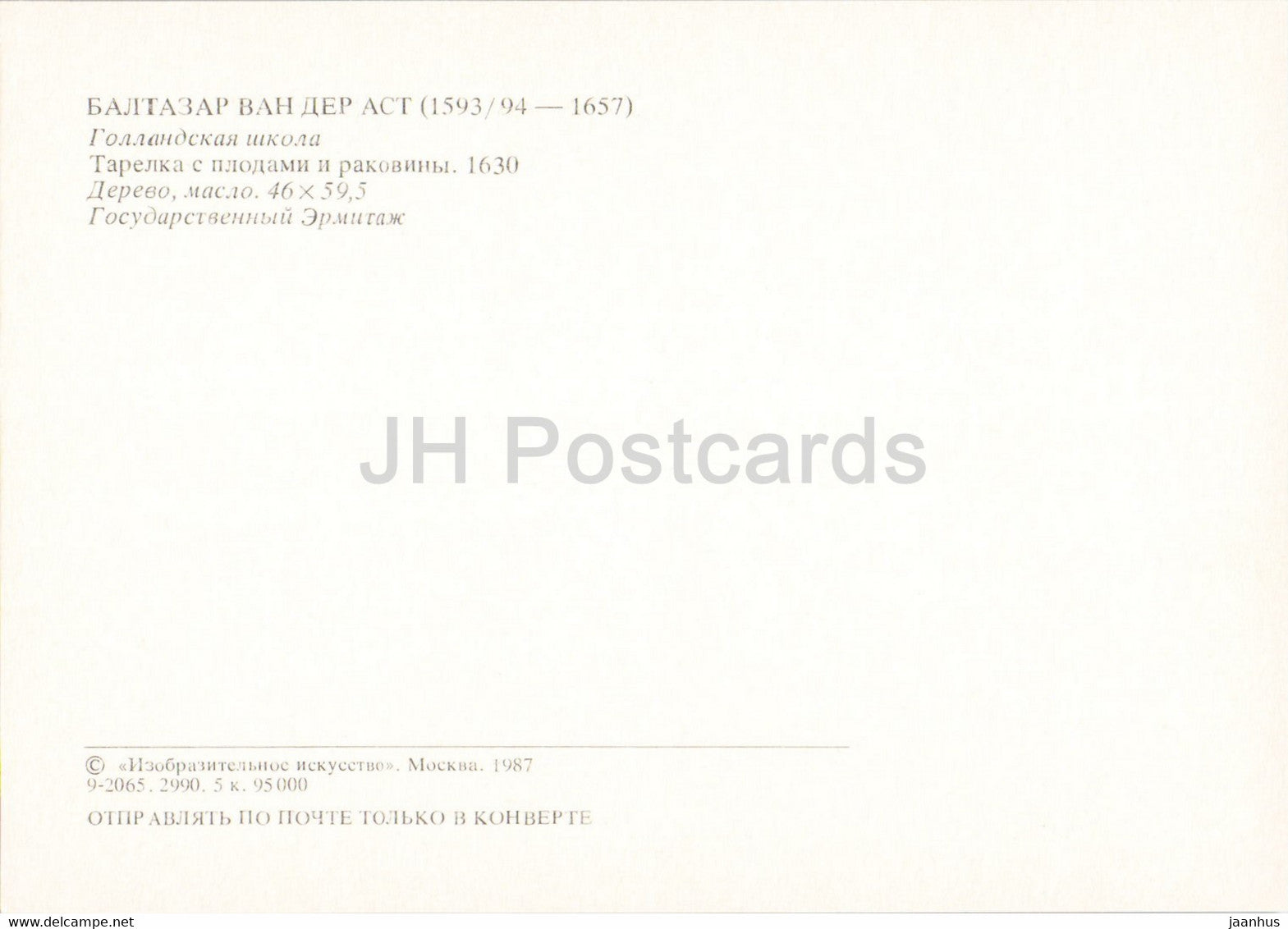 peinture de Balthasar van der Ast - Assiette avec fruits et coquillages - coquille - Art néerlandais - 1987 - Russie URSS - inutilisé