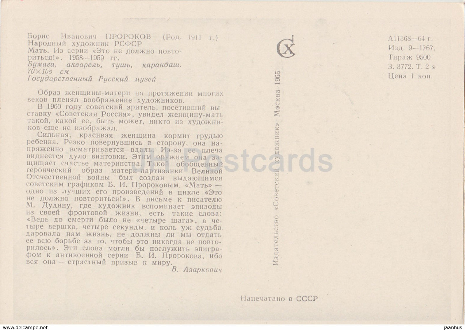 peinture de Boris Prorokov - Mère allaitante - Art russe - 1965 - Russie URSS - inutilisé