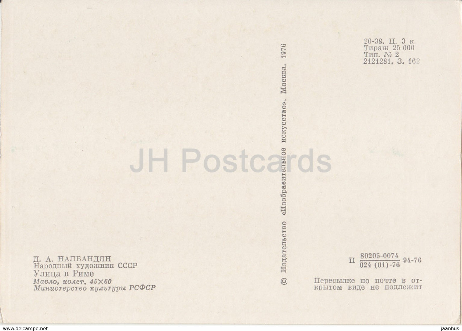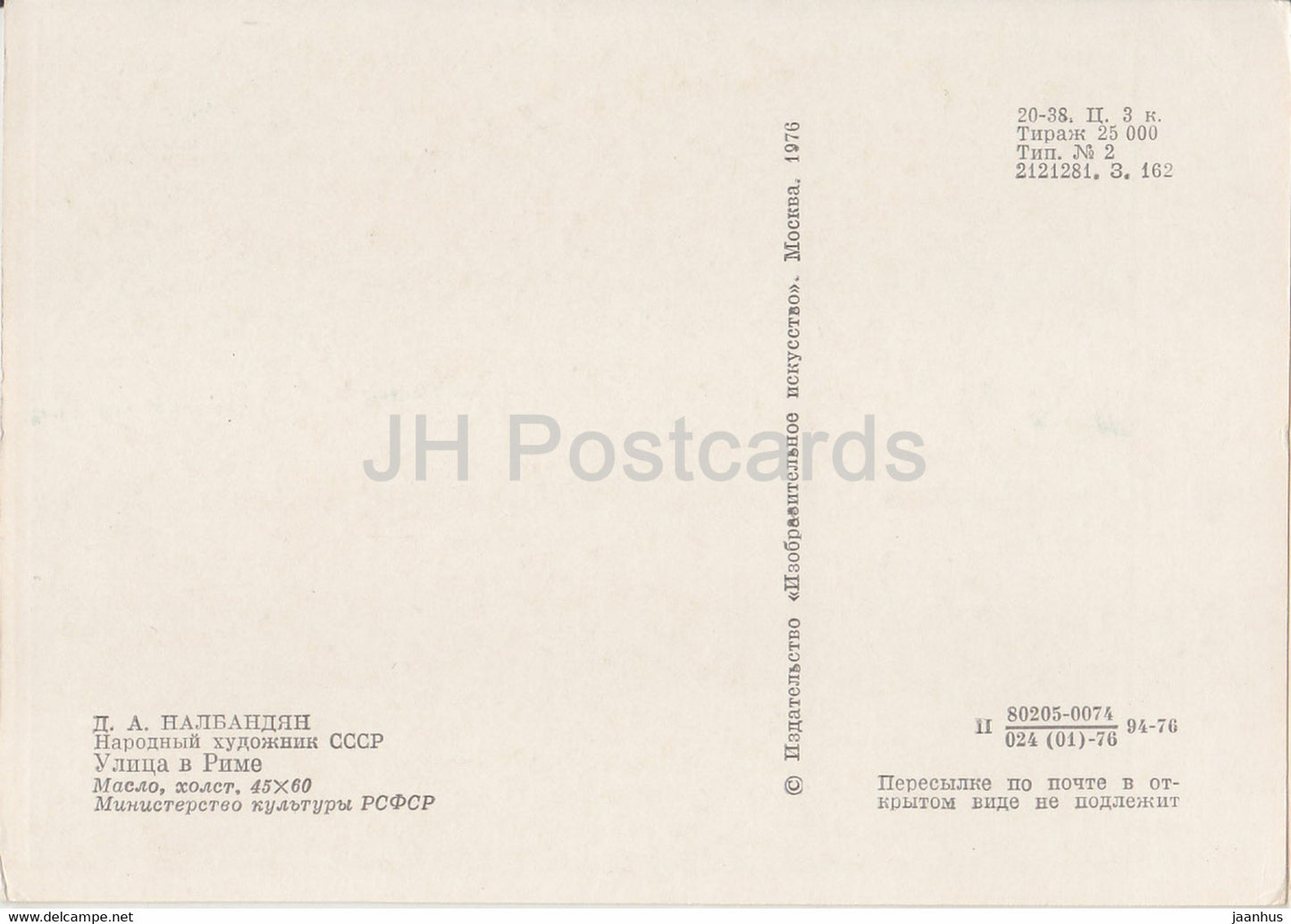 peinture de D. Nalbandyan - Rue de Rome - Art arménien - 1976 - Russie URSS - inutilisé