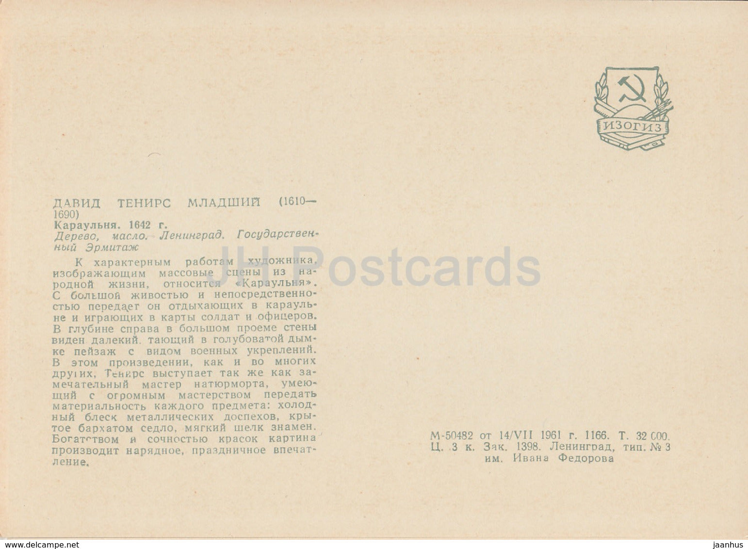 tableau de David Teniers le Jeune - Garde - Art flamand - 1961 - Russie URSS - inutilisé