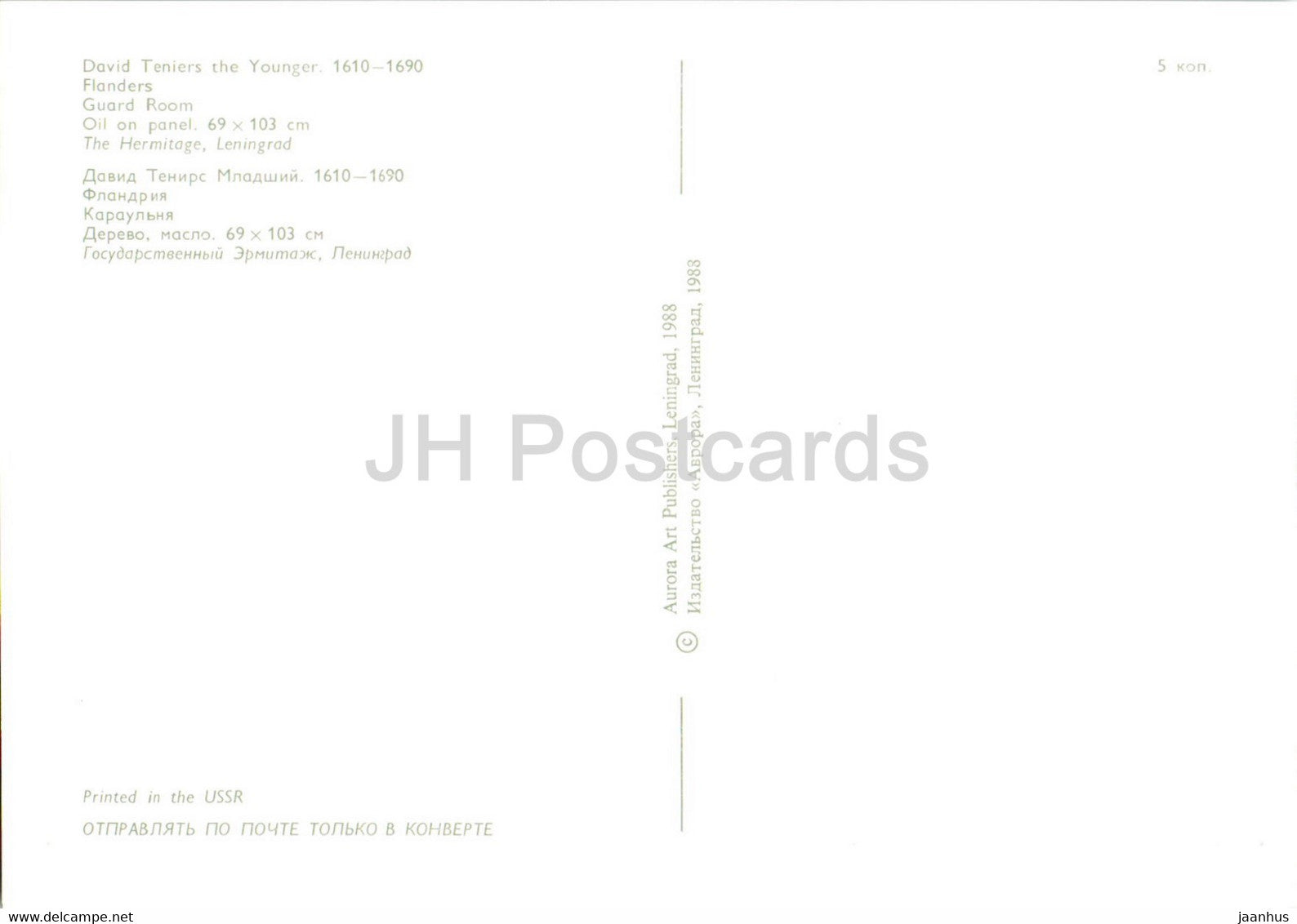 tableau de David Teniers le Jeune - Salle des Gardes - chien - Art flamand - 1988 - Russie URSS - inutilisé