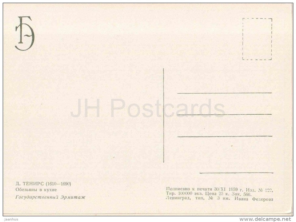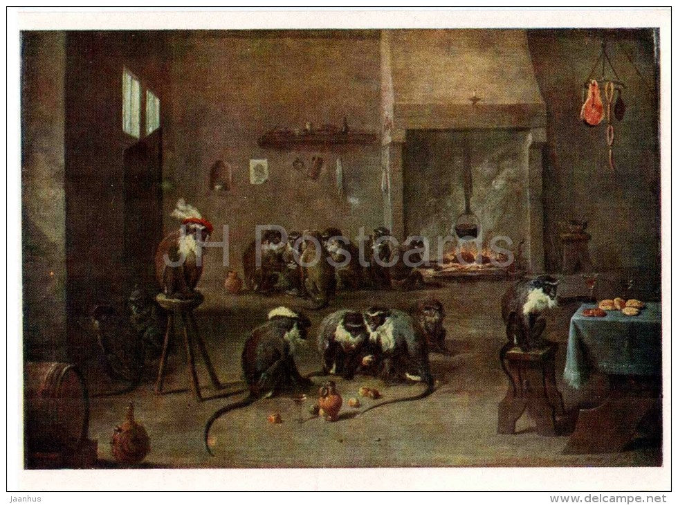 tableau de David Teniers le Jeune - Singes dans la cuisine - art flamand - inutilisé