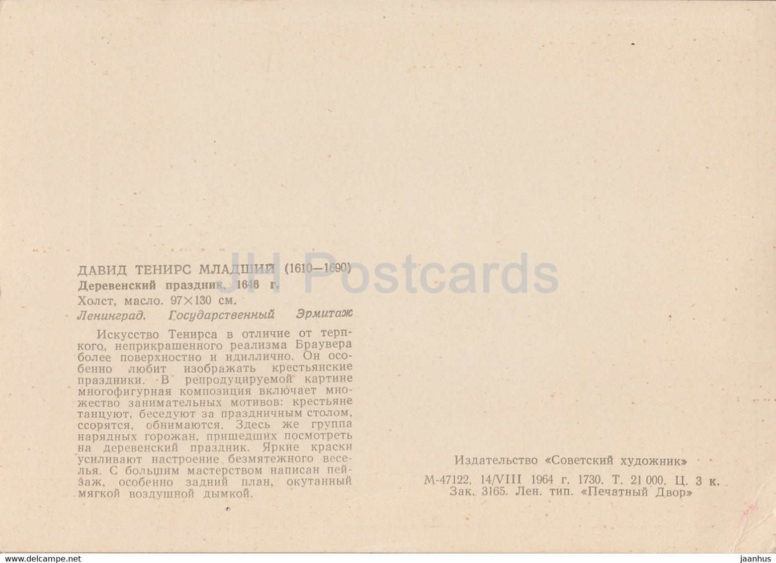 tableau de David Teniers le Jeune - Vacances au village - Art flamand - 1964 - Russie URSS - inutilisé