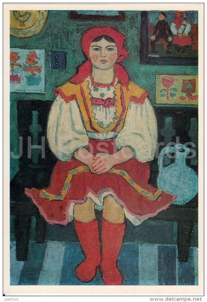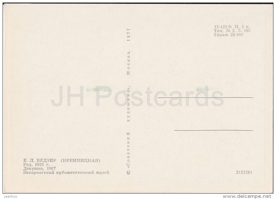 peinture de E. Bedzir - Fille ukrainienne, 1967 - Art ukrainien - Russie URSS - 1977 - inutilisé