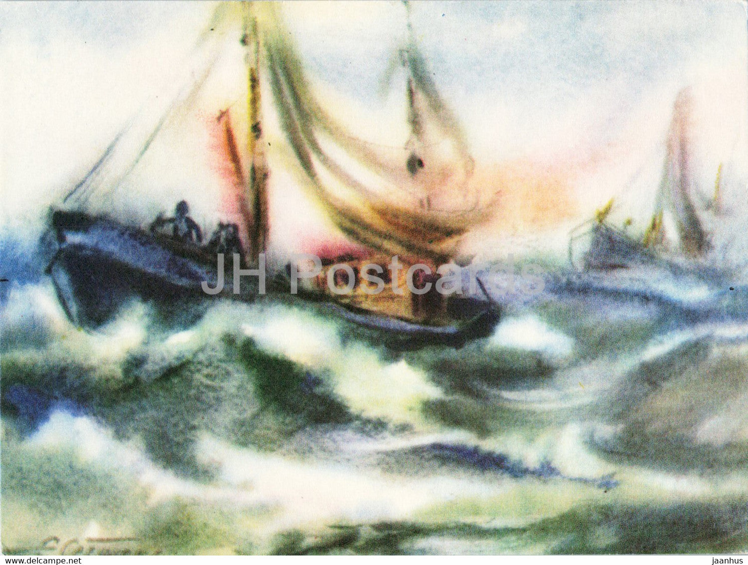 peinture de E. Cesnieka - Bateau de pêche - Art letton - 1963 - Lettonie URSS - inutilisé