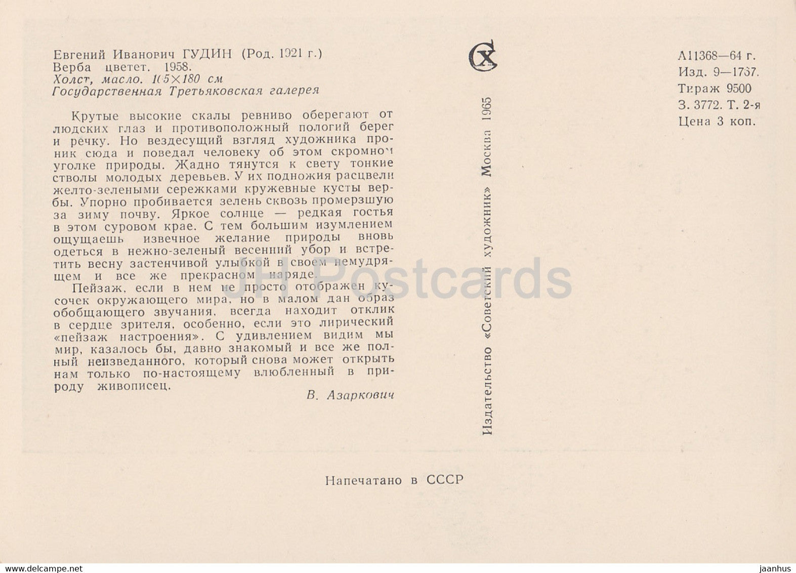 peinture de E. Gudin - Le saule chatte fleurit - Art russe - 1965 - Russie URSS - inutilisé