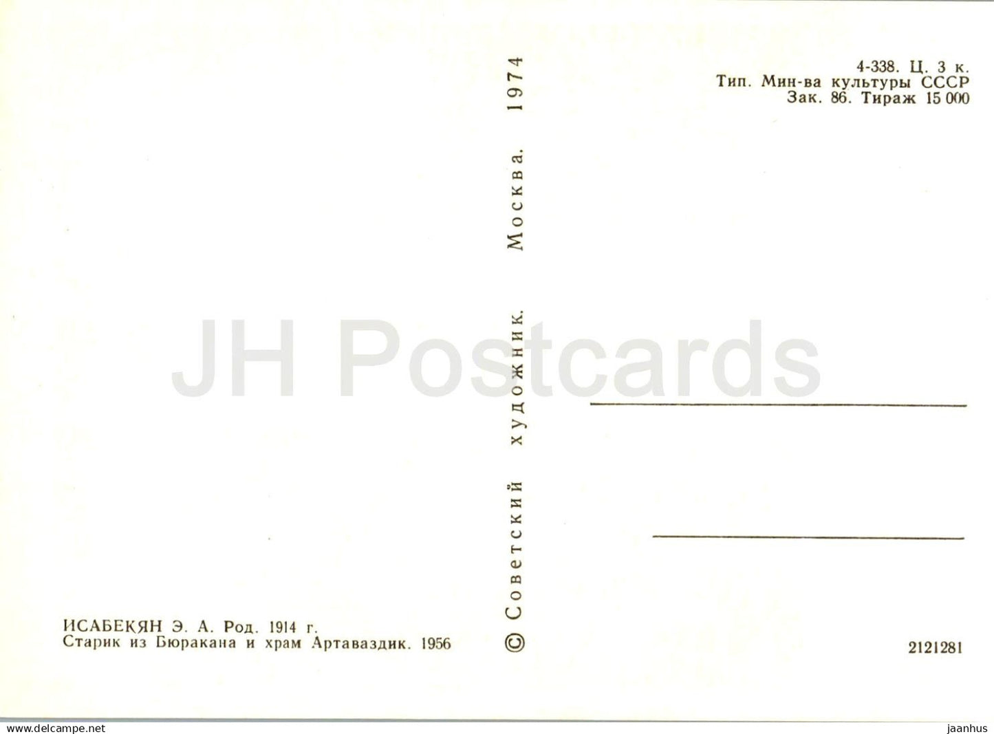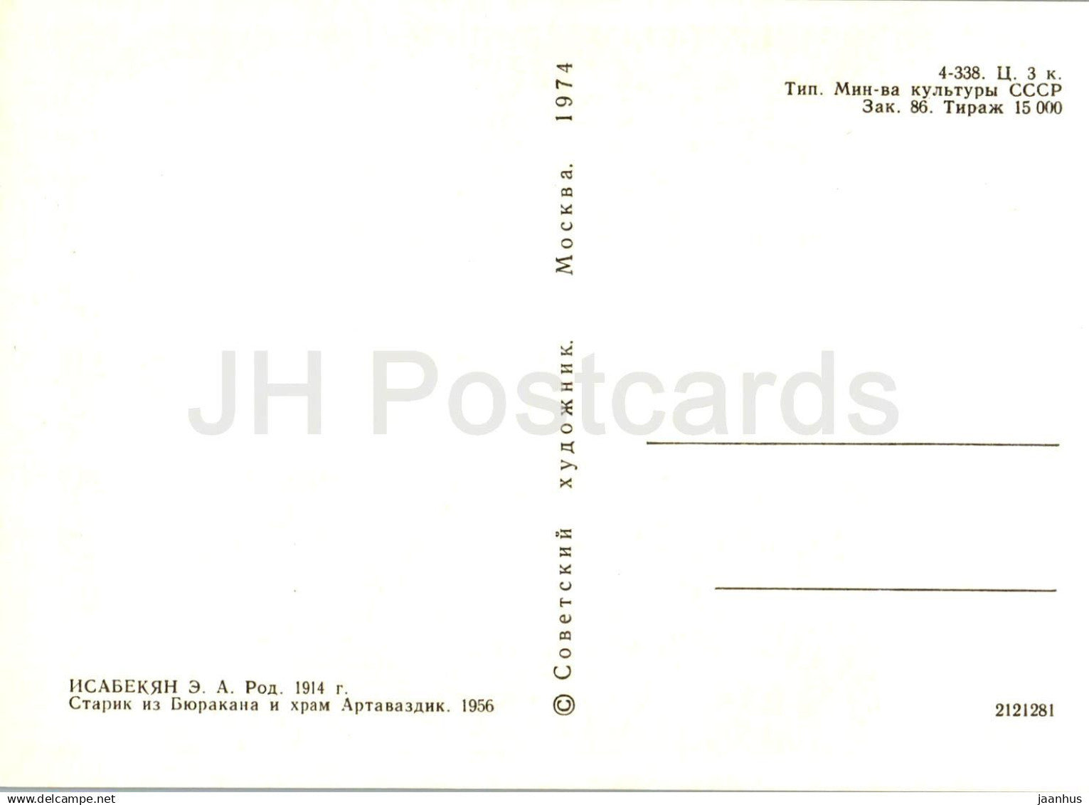 peinture de E. Isabekyan - Vieil homme de Byurakan et du temple d'Artavazd - art arménien - 1974 - Russie URSS - inutilisé