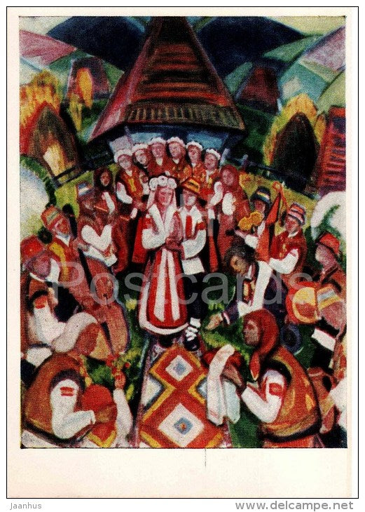peinture de E. Kontratovich - Rencontre de jeunes couples - art ukrainien - inutilisé