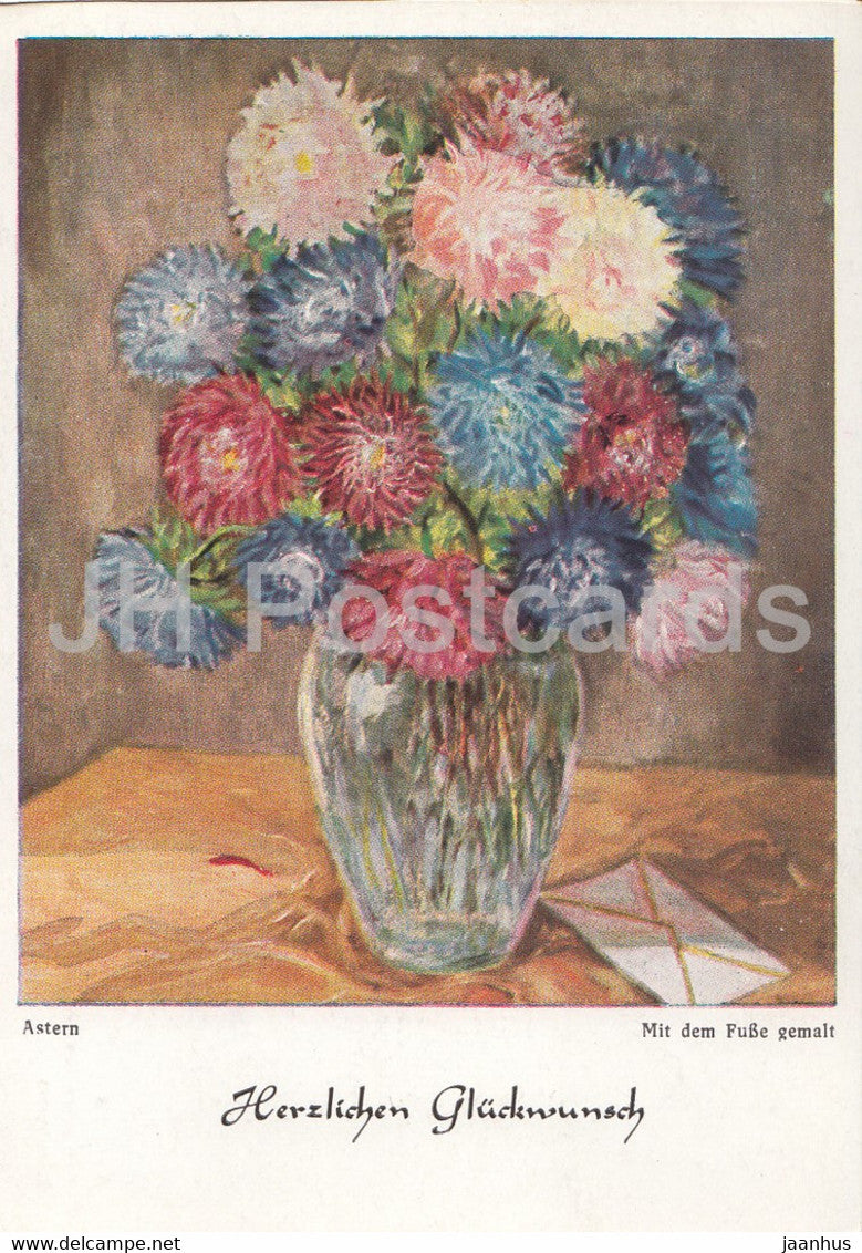 peinture d'Erich Macho - Astern - asters - fleurs - art autrichien - Allemagne - inutilisé
