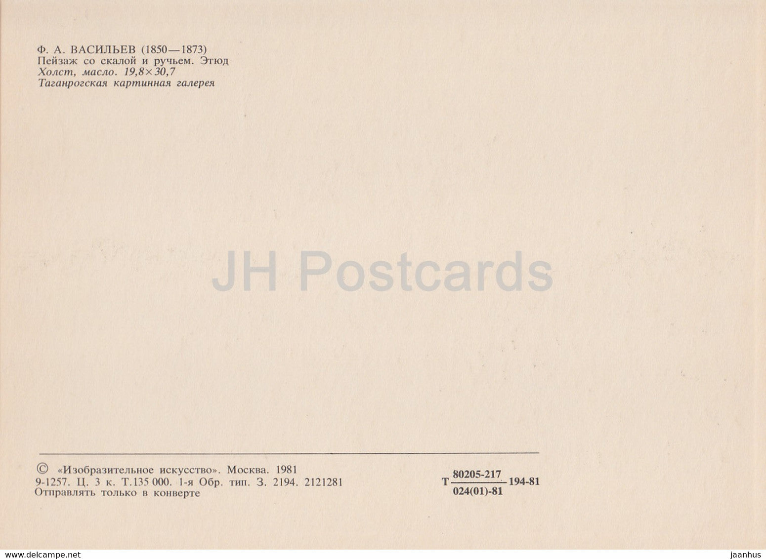 peinture de F. Vasiliev - Paysage avec un rocher et un ruisseau - Art russe - 1981 - Russie URSS - inutilisé