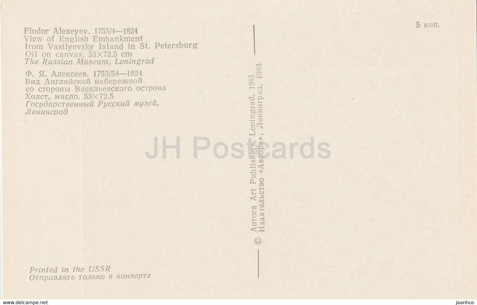 peinture de Fiodor Alexeyev - Vue du quai anglais - Saint-Pétersbourg - Art russe - 1983 - Russie URSS - inutilisé