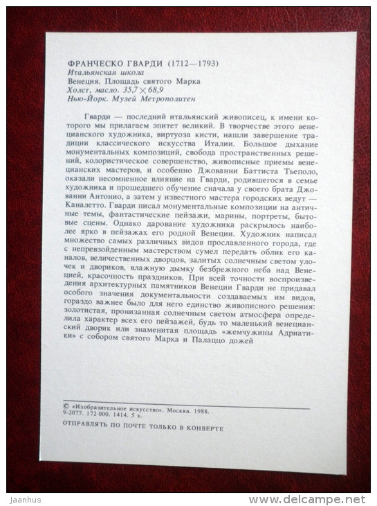 - Editeur : Izobrazitelnoe Iskusstvo, Russie URSS