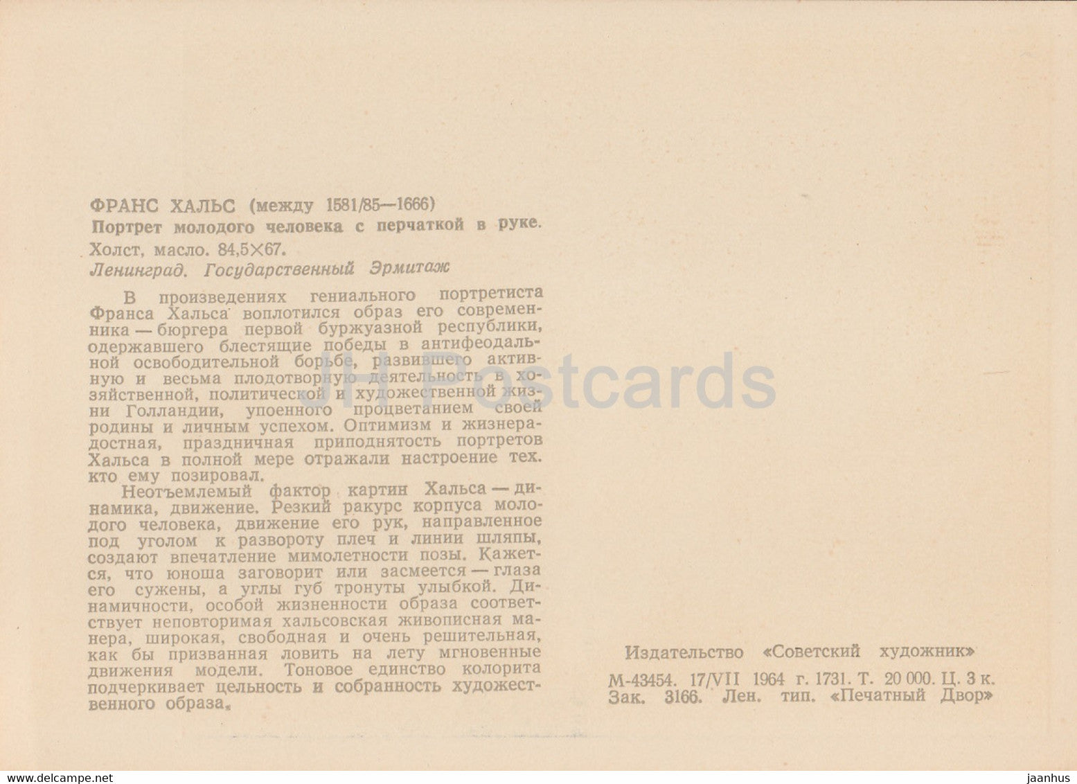 tableau de Frans Hals - Portrait d'un jeune homme avec un gant à la main - Art néerlandais - 1964 - Russie URSS - inutilisé