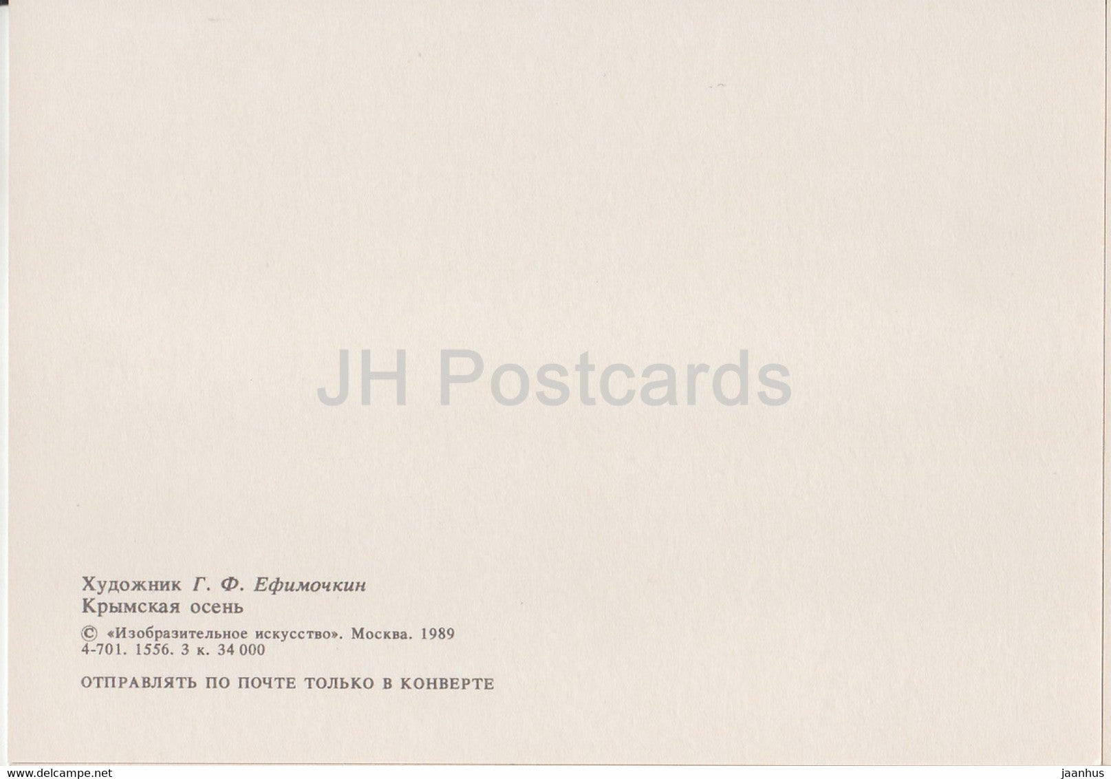 peinture de G. Efimochkin - Koktebel - Automne en Crimée - Art russe - 1989 - Russie URSS - inutilisé