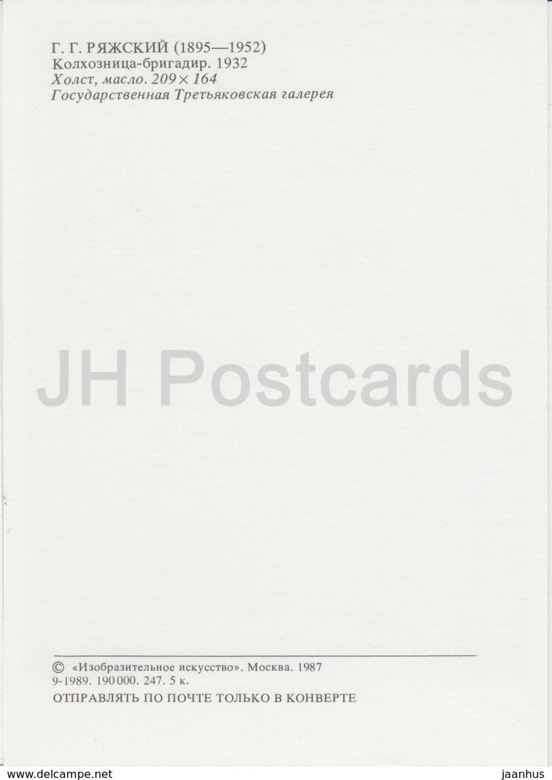 peinture de G. Ryashsky - Brigadier de ferme collective (kolkhoze) - tracteur - Art russe - 1987 - Russie URSS - inutilisé