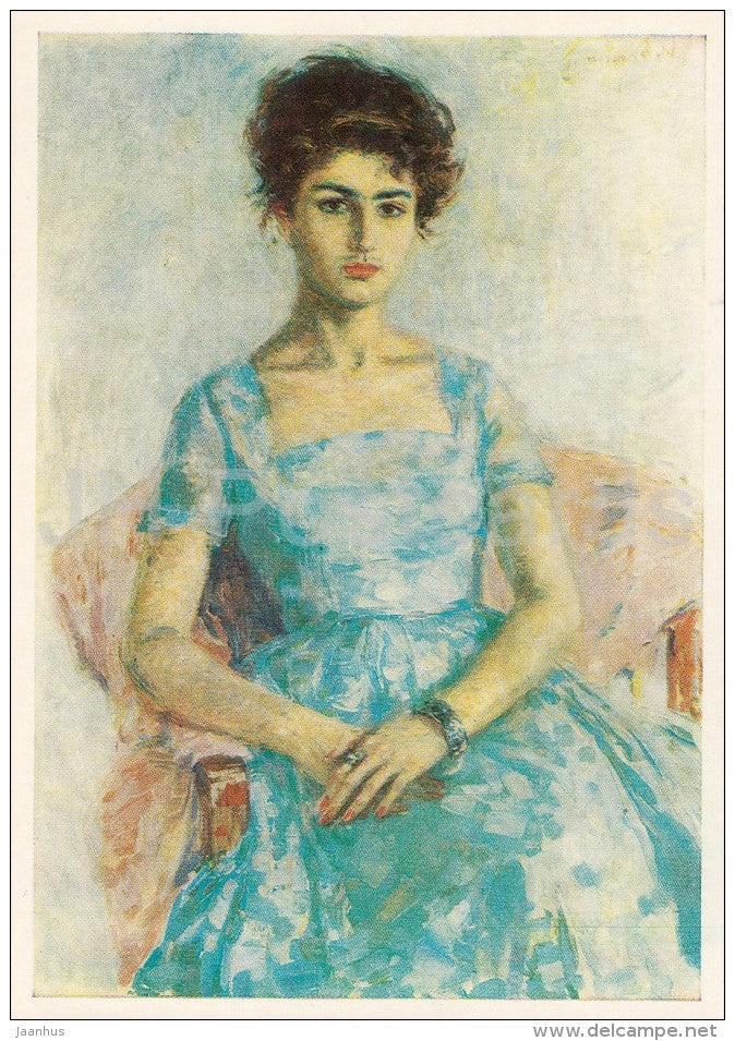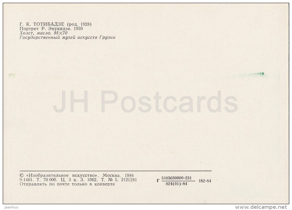 peinture de G. Totibadze - Portrait de R. Enukidze, 1959 - femme - Art géorgien - Russie URSS - 1984 - inutilisé