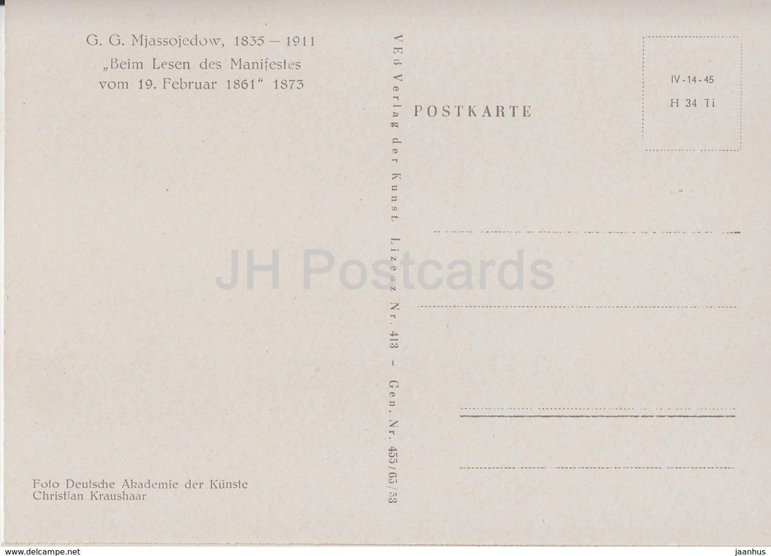 tableau de Grigoriy Myasoyedov - lisant le manifeste en 1861 - paysans - art russe - 1953 - Allemagne DDR - inutilisé