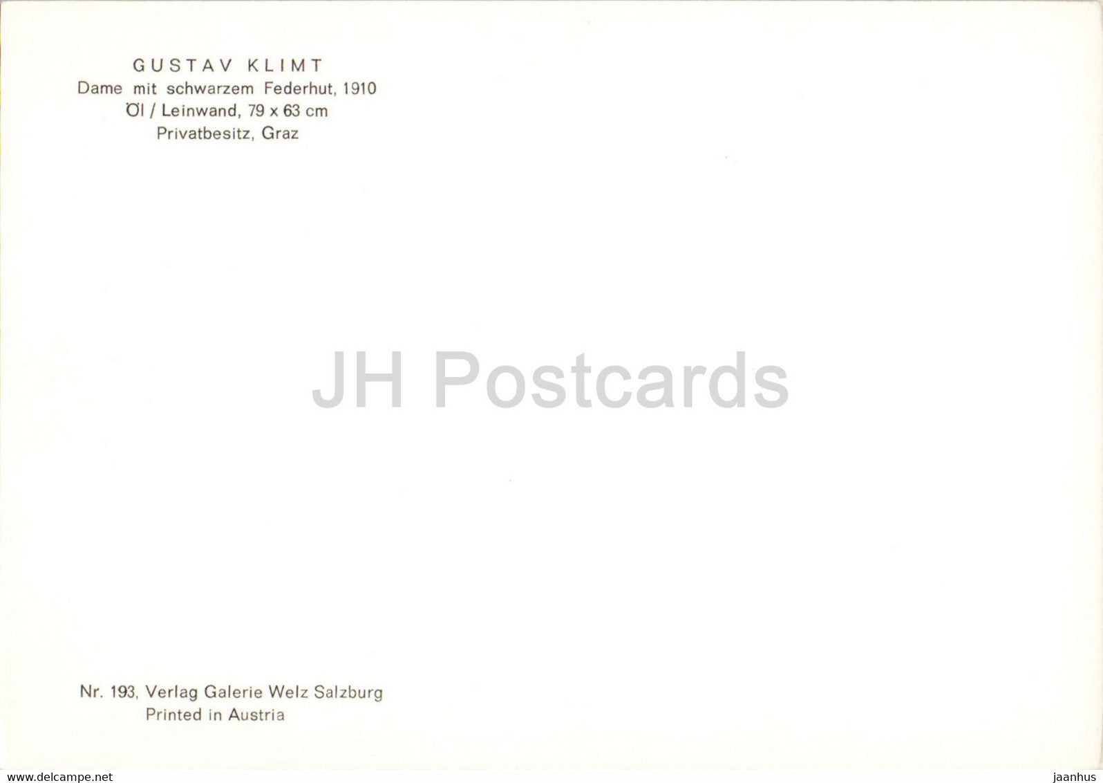peinture de Gustav Klimt - Dame mit schwarzem Federhut - Femme au chapeau noir - Art autrichien - Autriche - inutilisé
