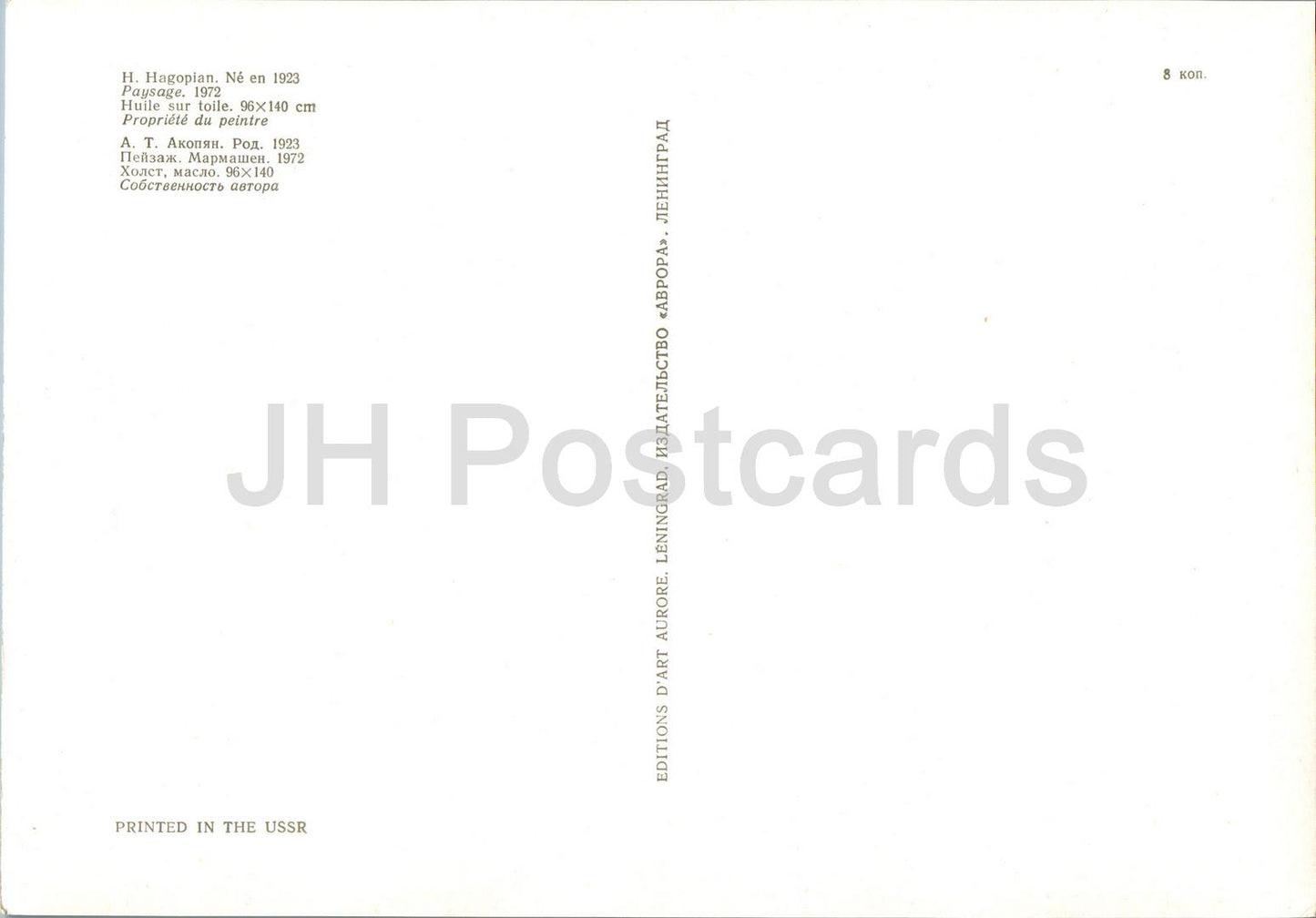 peinture de Hakob Hakobian - Paysage Marmashen - Art arménien - Carte grand format - 1975 - Russie URSS - inutilisé