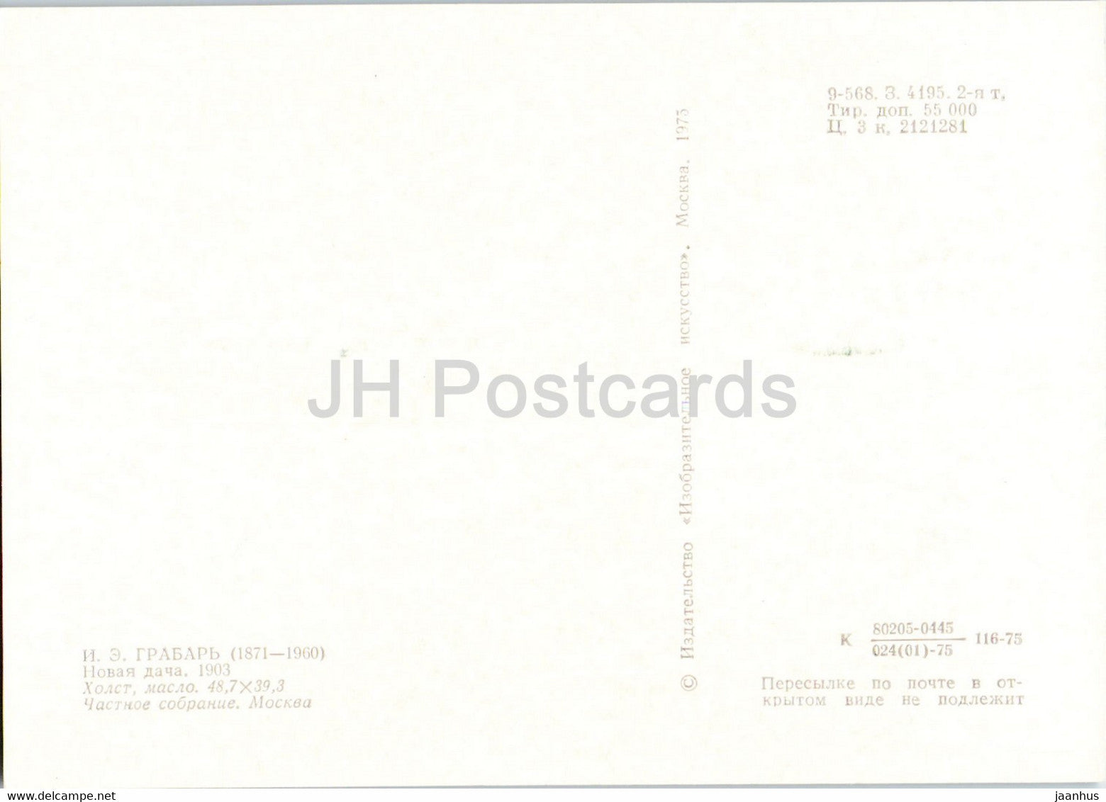 peinture de I. Grabar - Nouvelle Dacha - Art russe - 1975 - Russie URSS - inutilisé