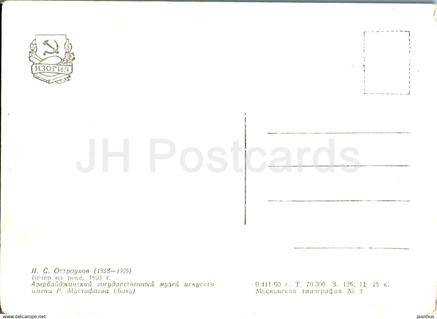 peinture de I. Ostroukhov - Soirée au bord de la rivière - art russe - 1960 - Russie URSS - inutilisé