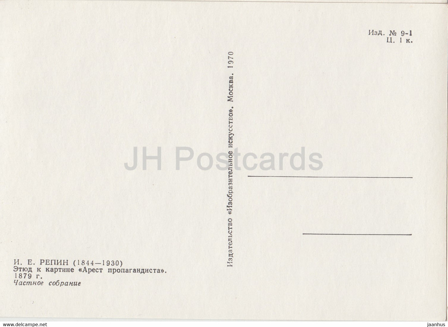 tableau de I. Repin - Arrestation d'un propagandiste . Etude - Art russe - 1970 - Russie URSS - inutilisé