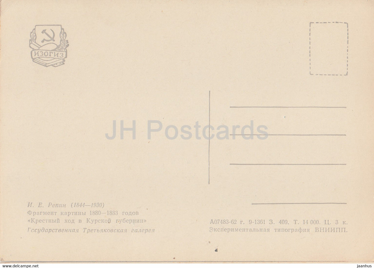 tableau de I. Repin - Procession religieuse dans la province de Koursk . Fragment - Art russe - 1962 - Russie URSS - inutilisé