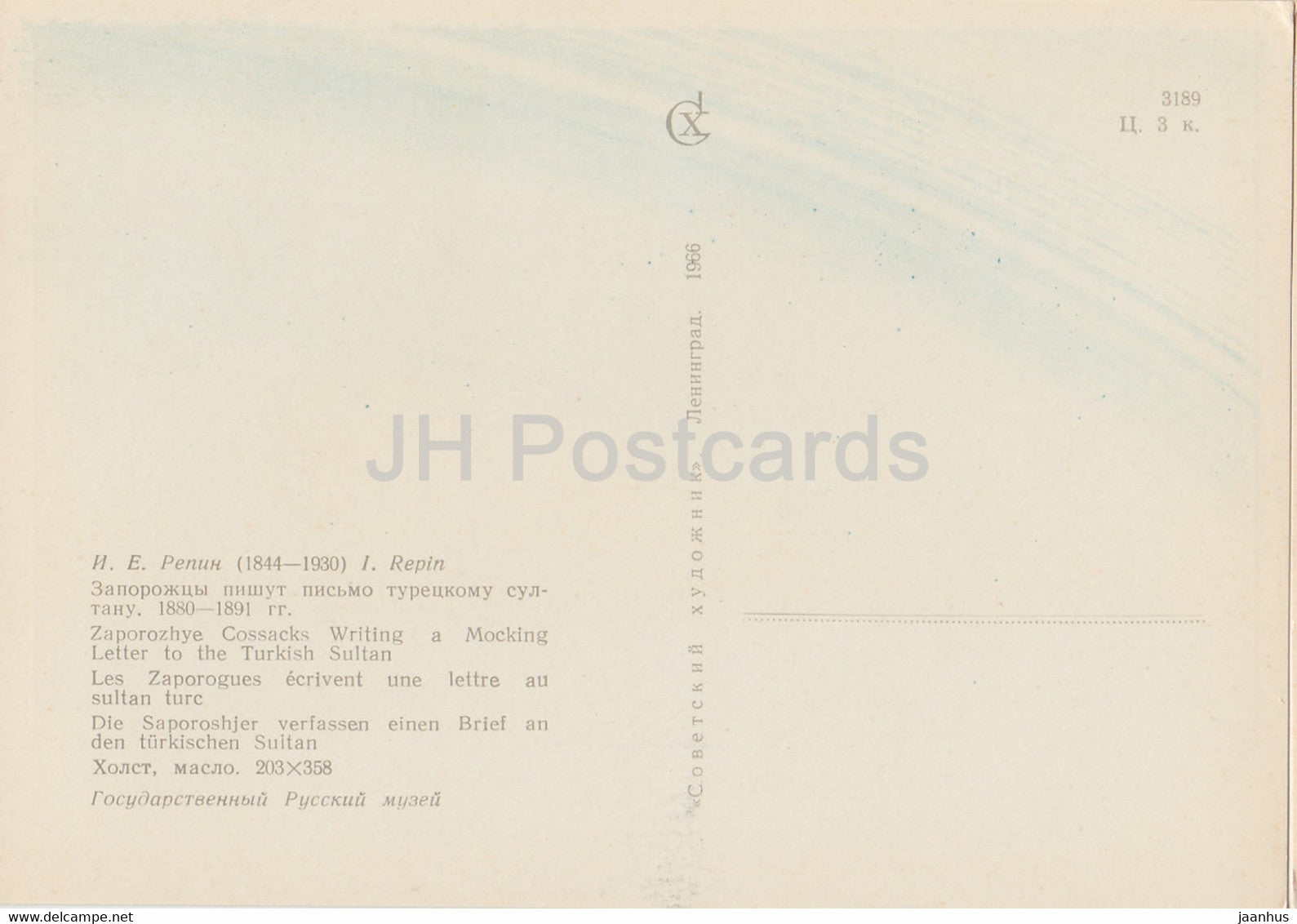 peinture de I. Repin - Les cosaques de Zaporozhye écrivant une lettre moqueuse au sultan turc - 1966 - Russie URSS - inutilisé