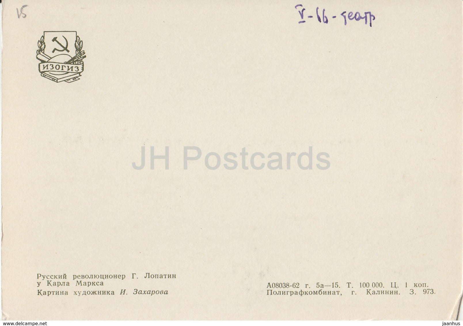 peinture de I. Zakharov - Révolutionnaire russe G. Lopatin de Karl Marx - Art russe - 1962 - Russie URSS - inutilisé