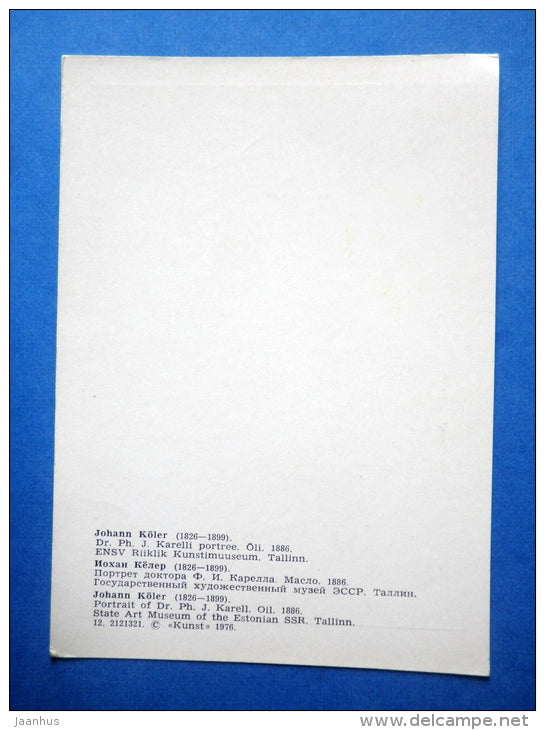 peinture de J. Köler - Portrait du Dr Ph. J. Karell, 1886 - art estonien - inutilisé