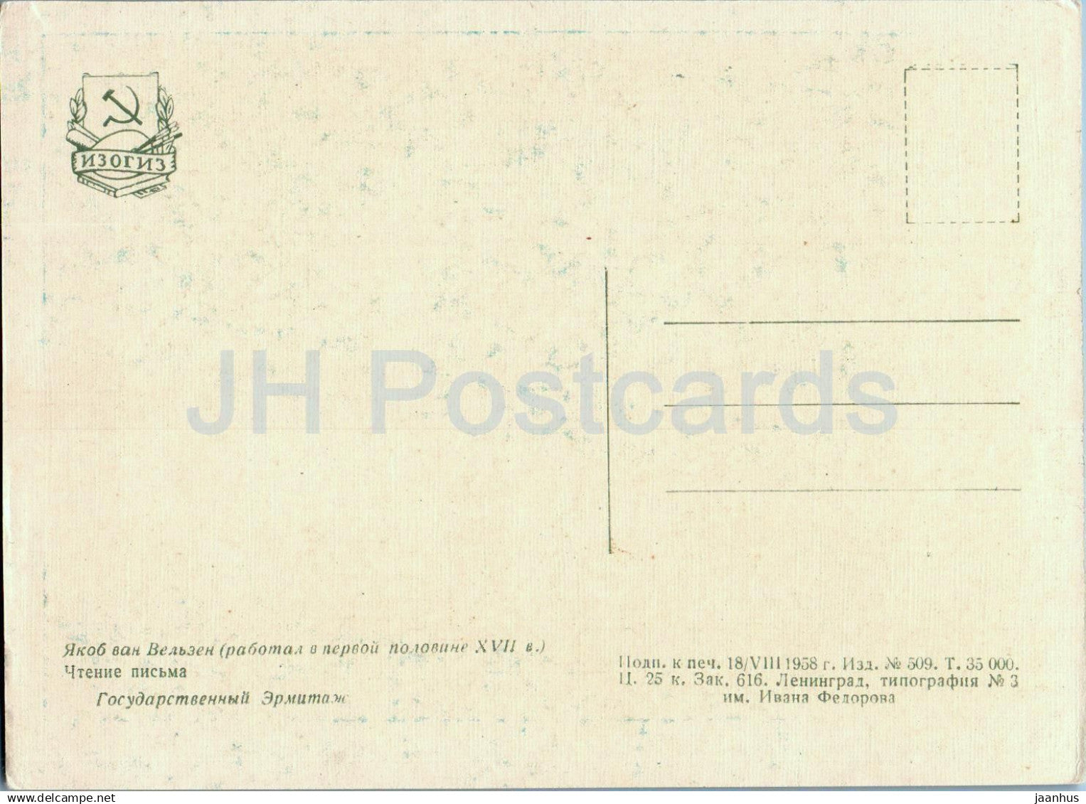 peinture de Jacob Jansz van Velsen - Lecture de la lettre - Art néerlandais - 1958 - Russie URSS - inutilisé