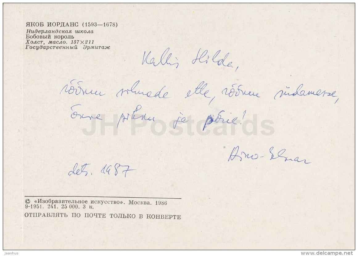 peinture de Jacob Jordaens - 1 - Bean King - Art flamand - 1986 - Russie URSS - utilisé