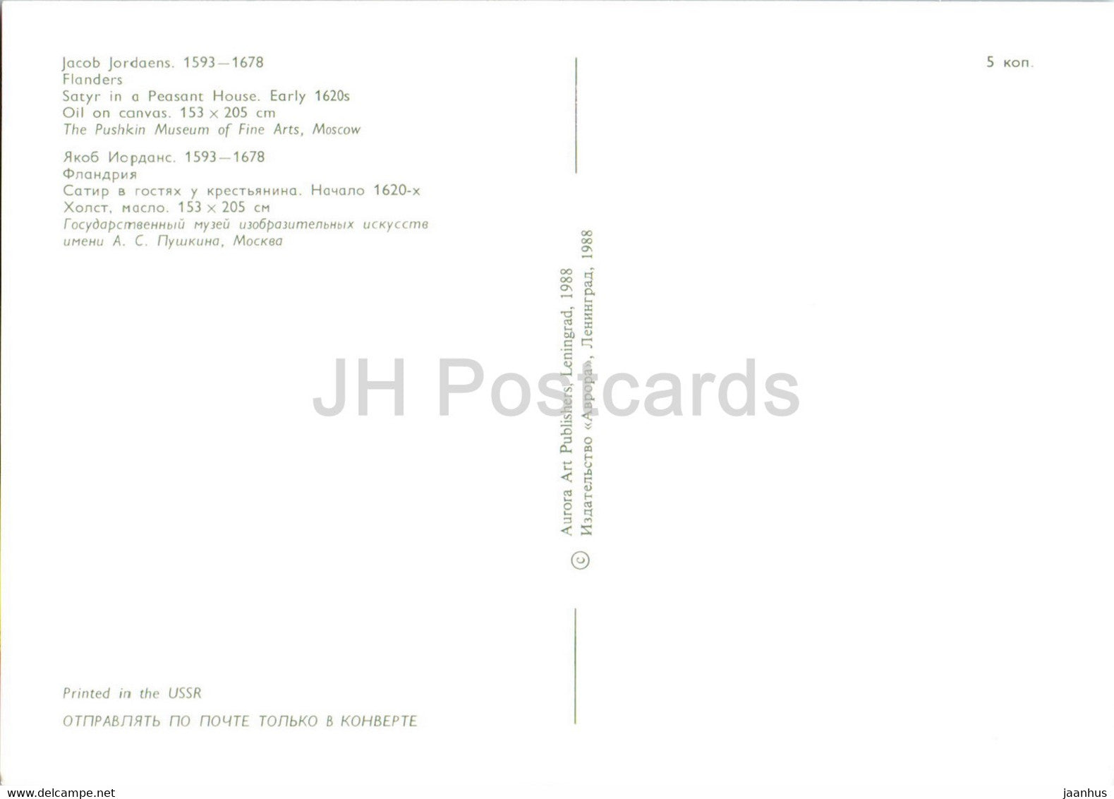 peinture de Jacob Jordaens - Satyre dans une maison paysanne - Art flamand - 1988 - Russie URSS - inutilisé