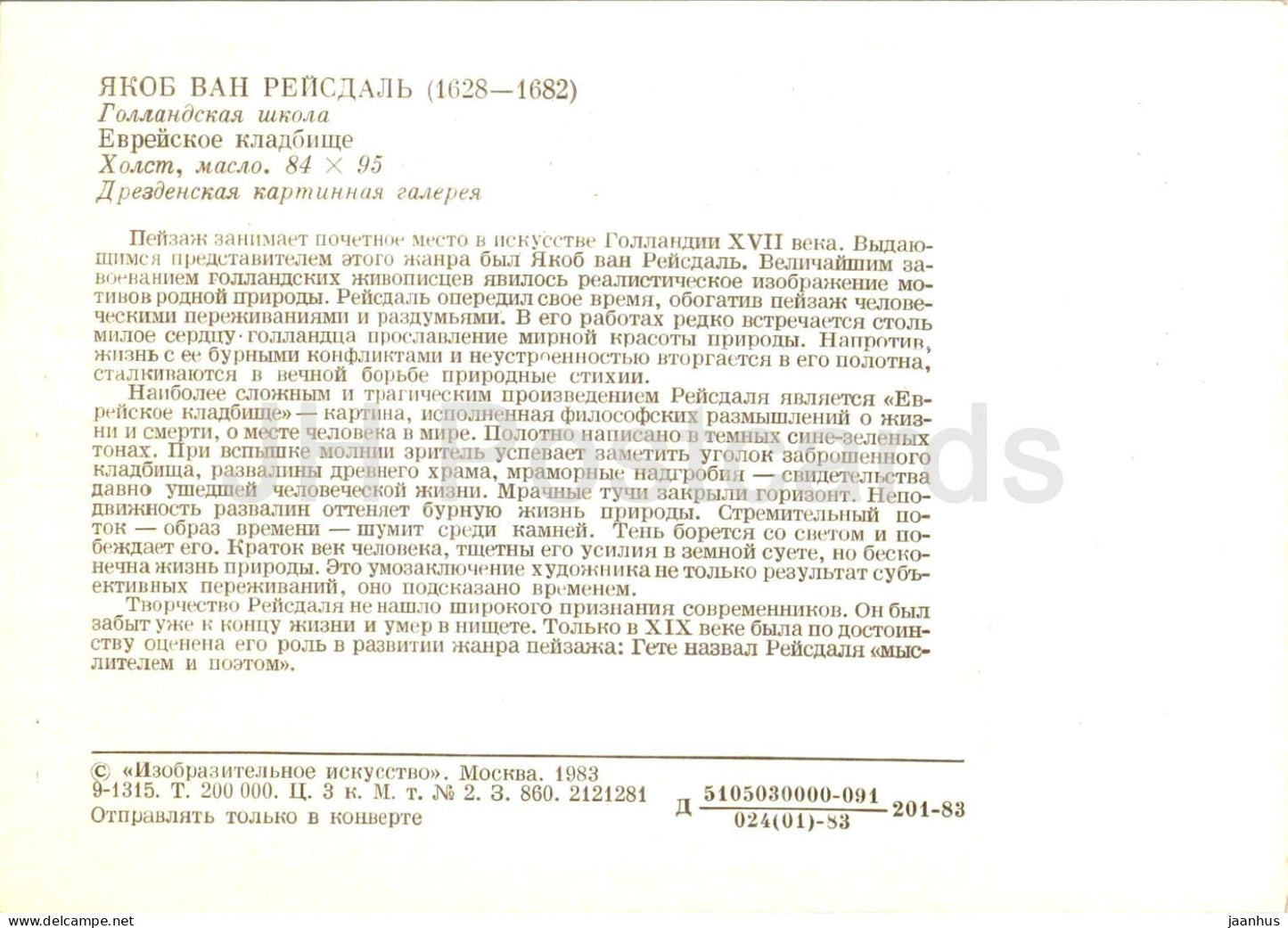 peinture de Jacob van Ruisdael - Cimetière juif - Art néerlandais - 1983 - Russie URSS - inutilisé