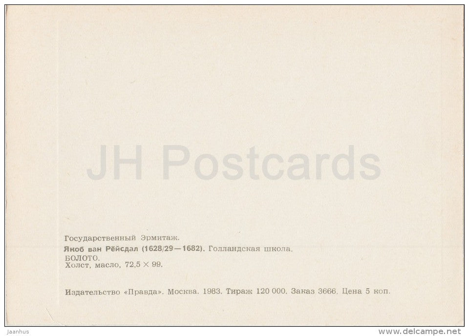 peinture de Jacob van Ruisdael - Le marais - Art néerlandais - 1983 - Russie URSS - inutilisé