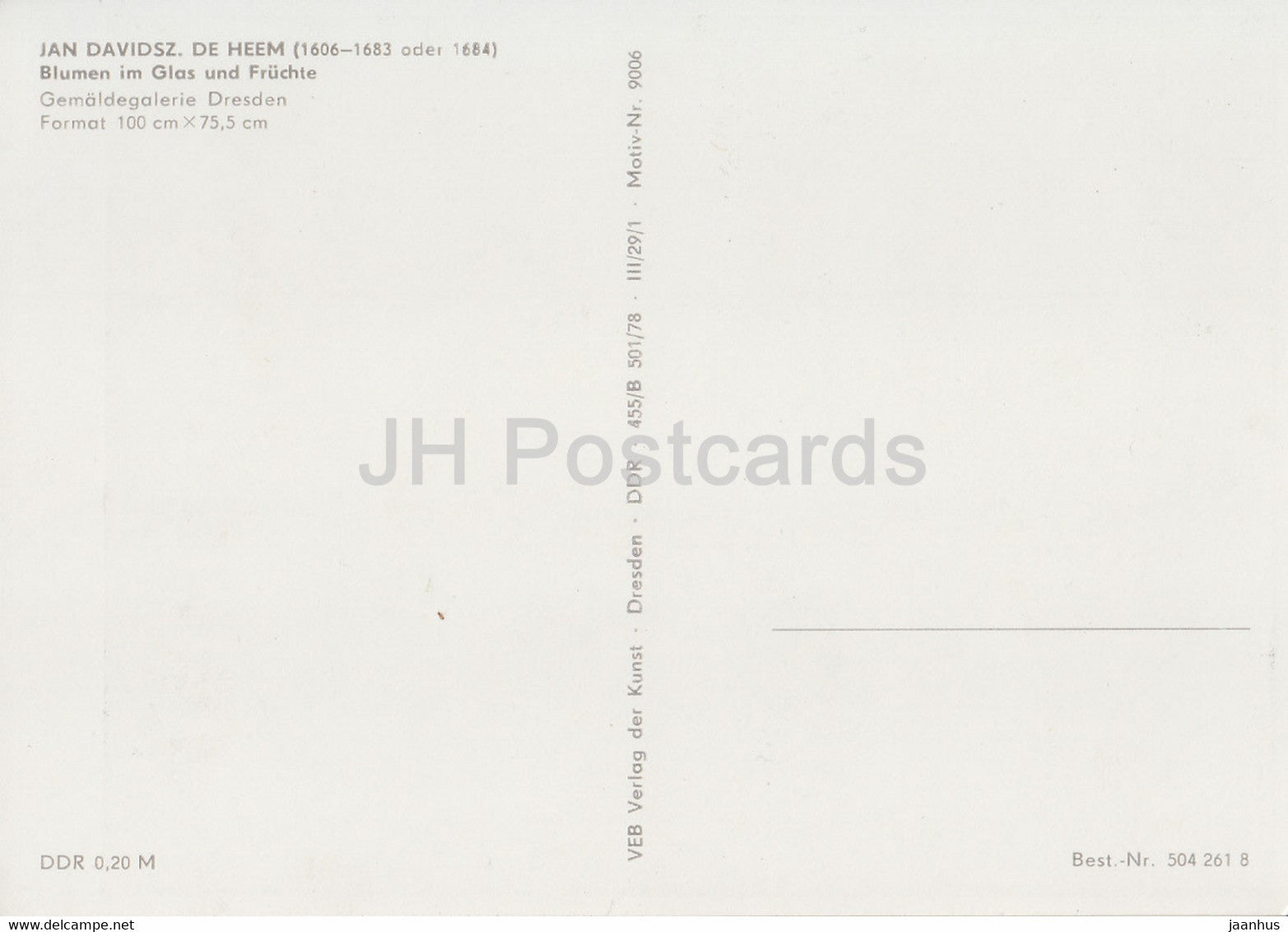 peinture de Jan Davidsz de Heem - Blumen im Glas und Fruchte - fleurs - art néerlandais - Allemagne DDR - inutilisé