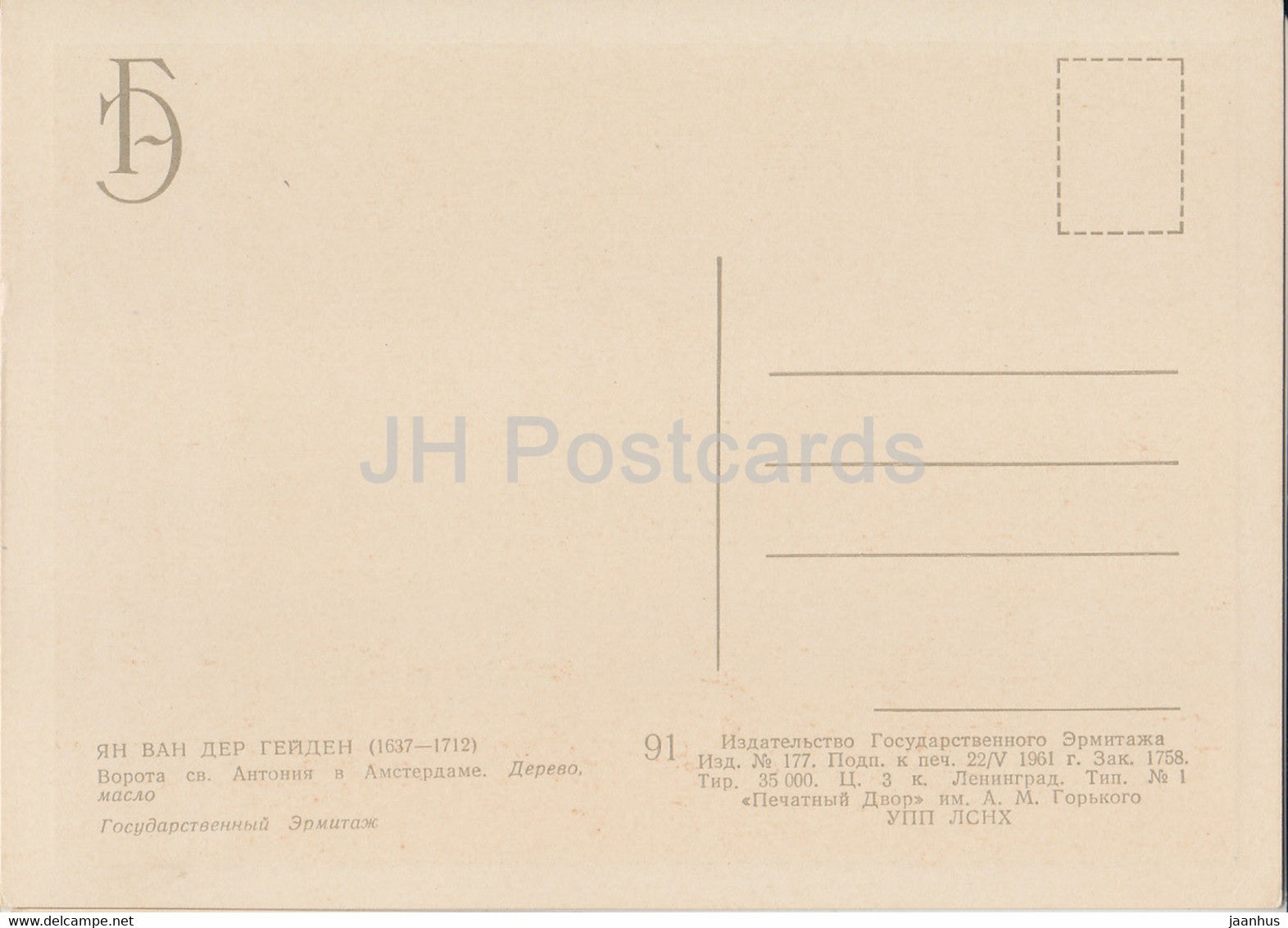 peinture de Jan van der Heyden - Porte Saint-Antoine à Amsterdam - Art néerlandais - 1961 - Russie URSS - inutilisé