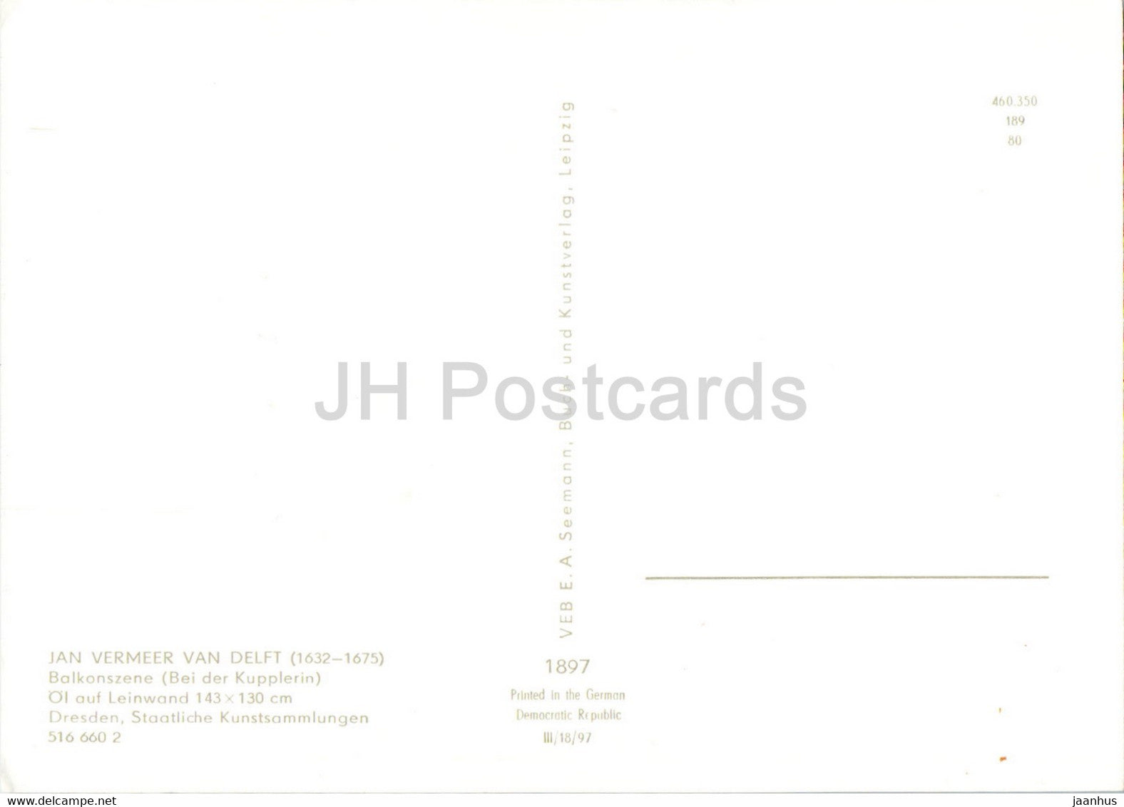 peinture de Jan Vermeer Van Delft - Balkonszene - Bei der Kupplerin - Chez la procureuse - Art néerlandais - Allemagne DDR inutilisée