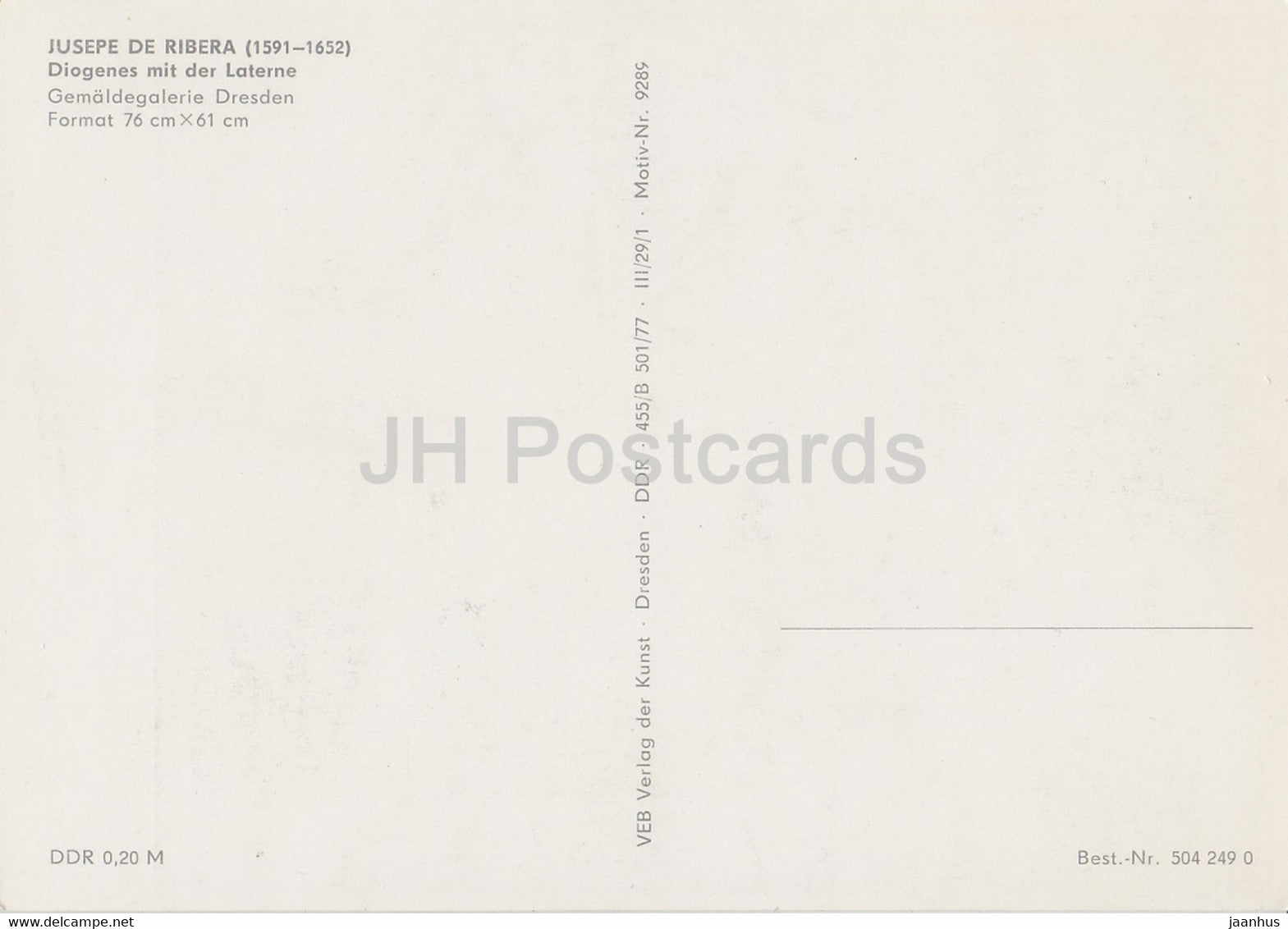 peinture de Jusepe de Ribera - Diogène mit der Laterne - 9289 - Art espagnol - Allemagne DDR - inutilisé