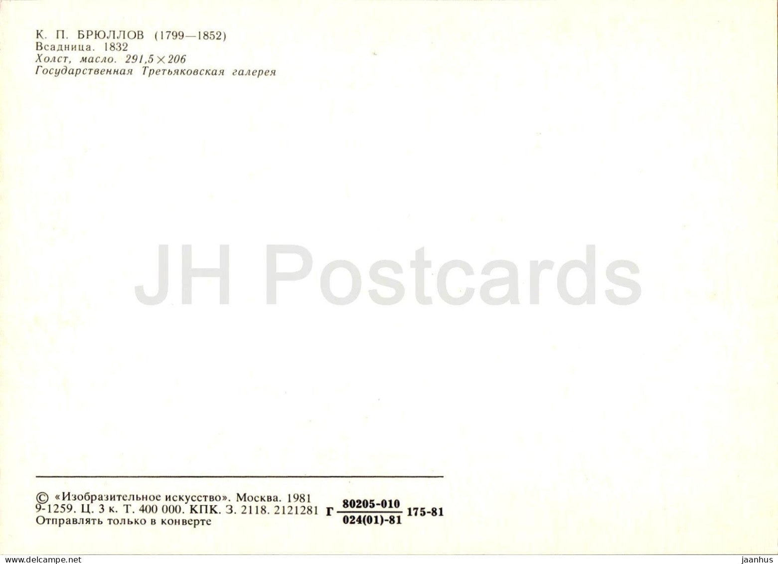 peinture de K. Bryullov - Rider Woman - cheval - chien - Art russe - 1981 - Russie URSS - inutilisé