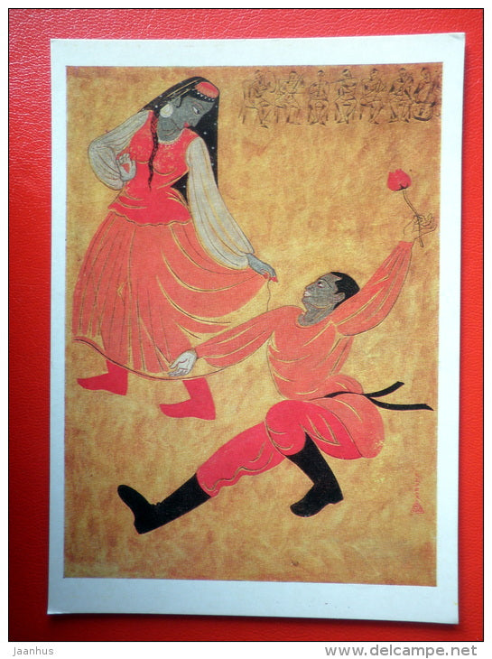 peinture de Kattenhari Krishna Hebbar. Danse - homme et femme - art indien - inutilisé