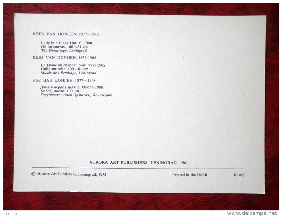 Peinture de Kees van Dongen - Dame au chapeau noir . 1908 - art hollandais - inutilisé