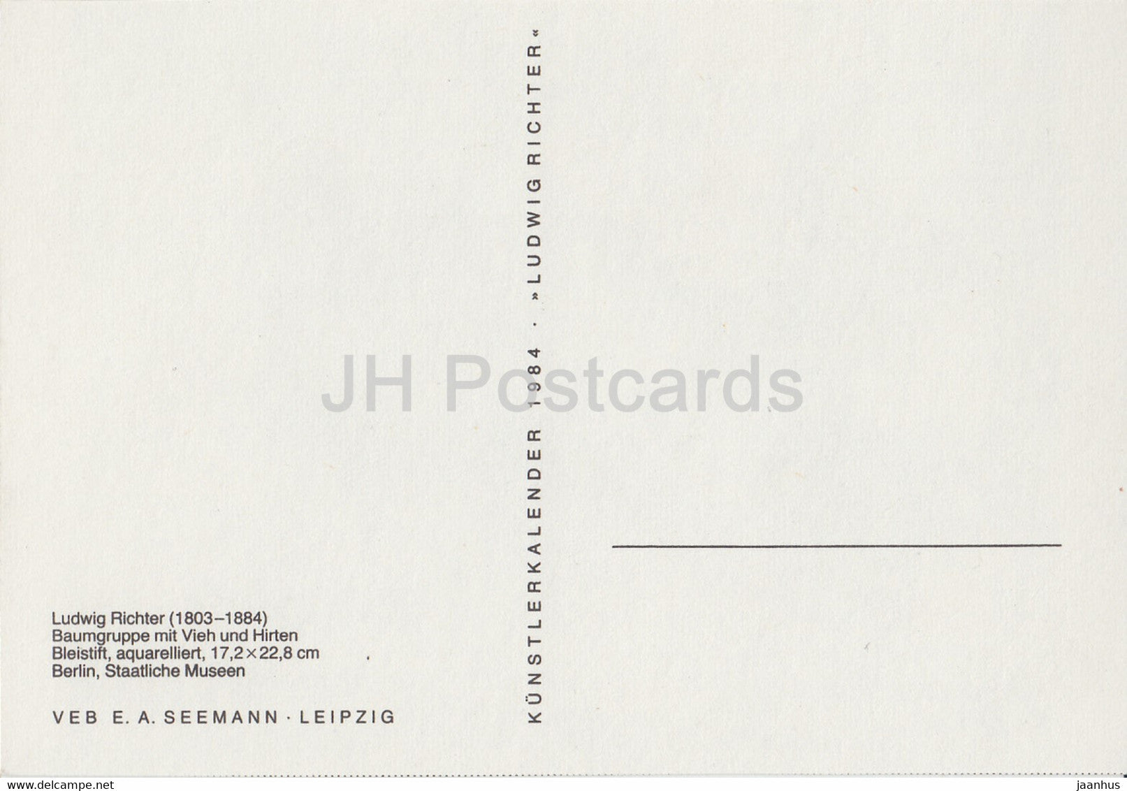 peinture de Ludwig Richter - Baumgruppe mit Vieh und Hirten - bétail et bergers - art allemand - 1984 Allemagne - inutilisé