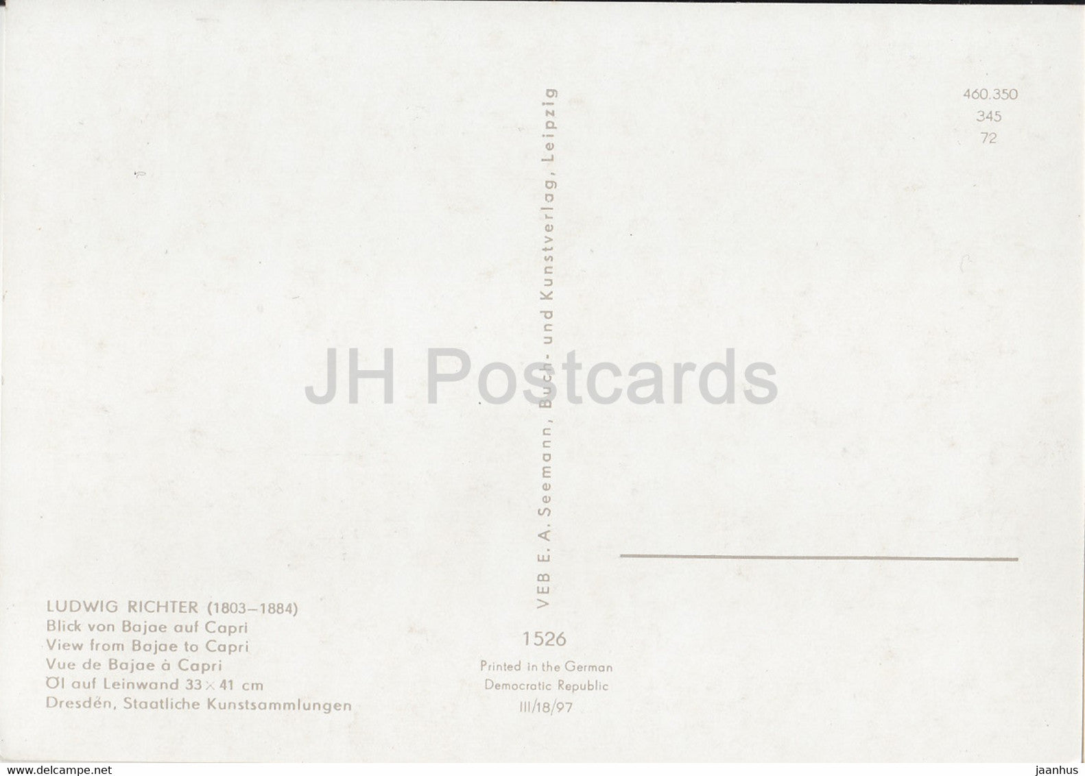 peinture de Ludwig Richter - Blick von Bajae auf Capri - bateau - 1526 - Art allemand - Allemagne DDR - inutilisé